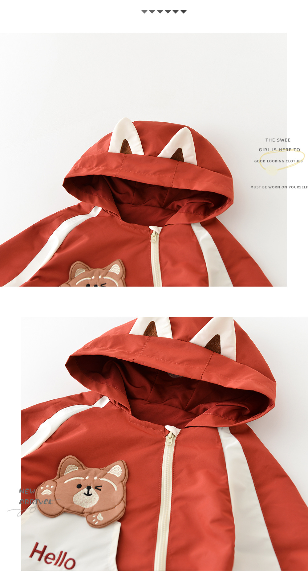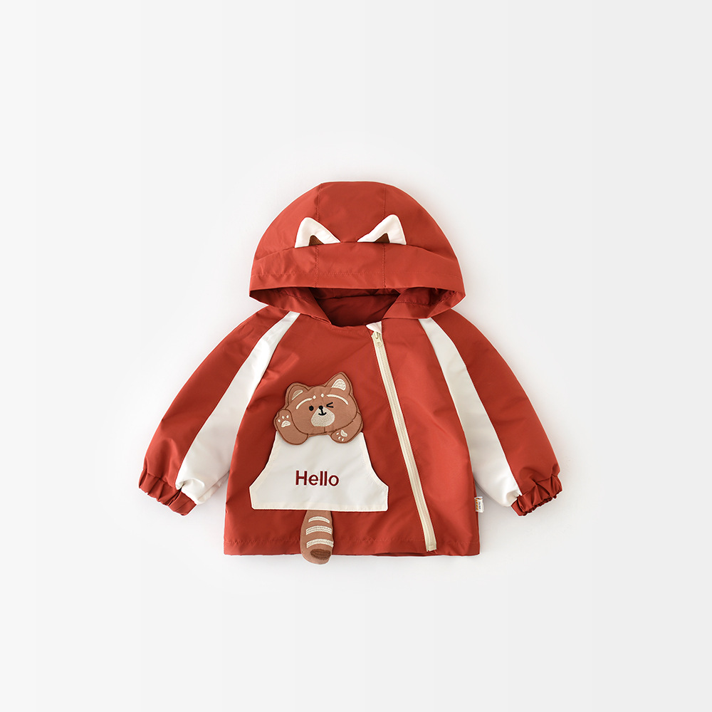 아기와 유아의 봄 코트 한국 스타일 코트 만화 작은 팬더 스티커 후드 외부 착용 재킷 51033