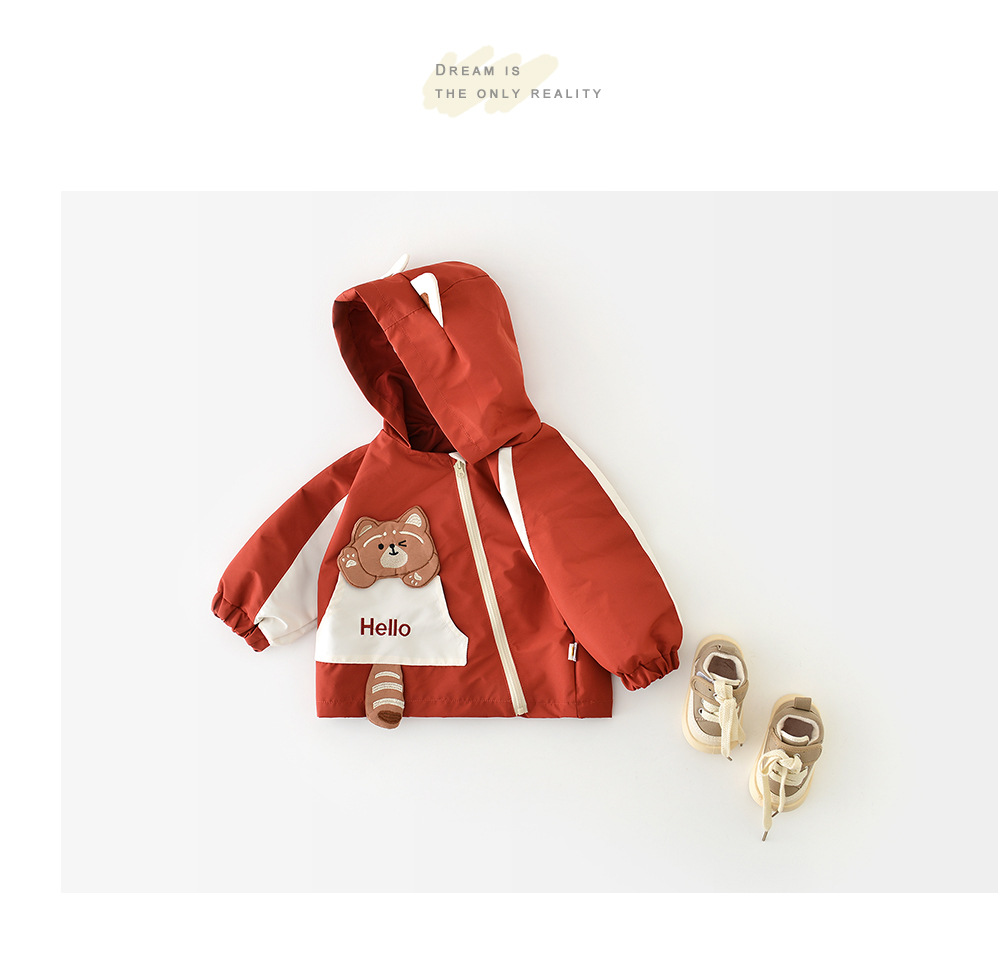 아기와 유아의 봄 코트 한국 스타일 코트 만화 작은 팬더 스티커 후드 외부 착용 재킷 51033스토어 가기