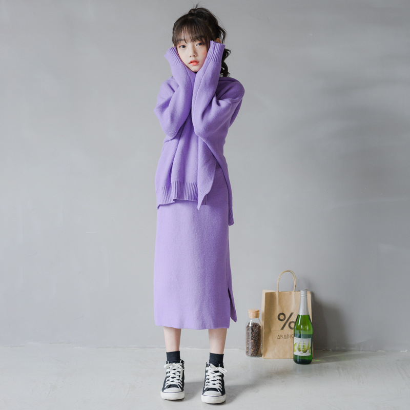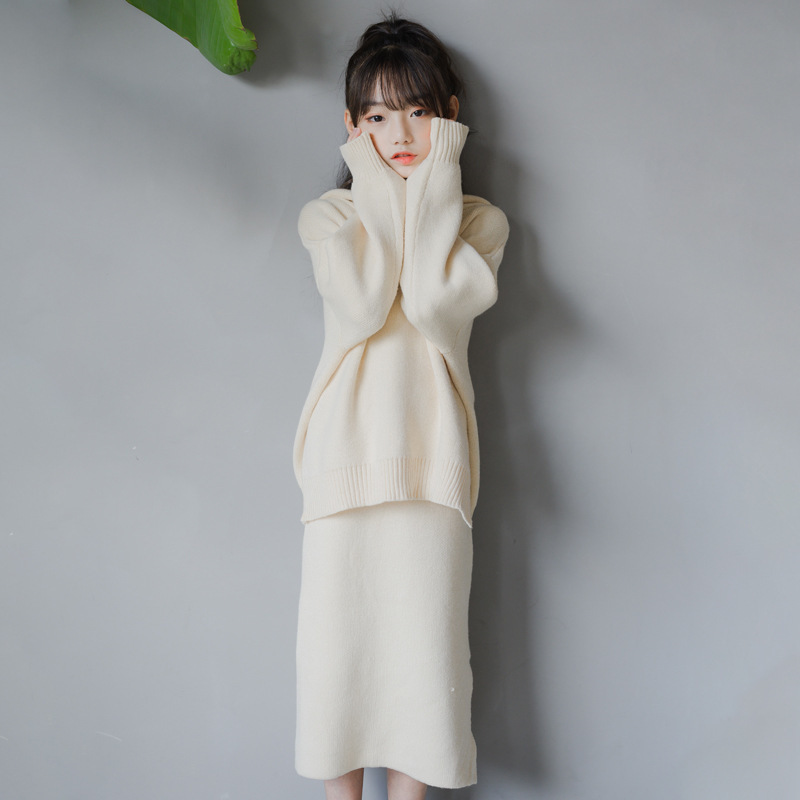 소녀 세트 2025 봄과 가을 느슨한 한국 스웨터 니트 캐주얼 세트 스웨터 스커트 2 피스 세트