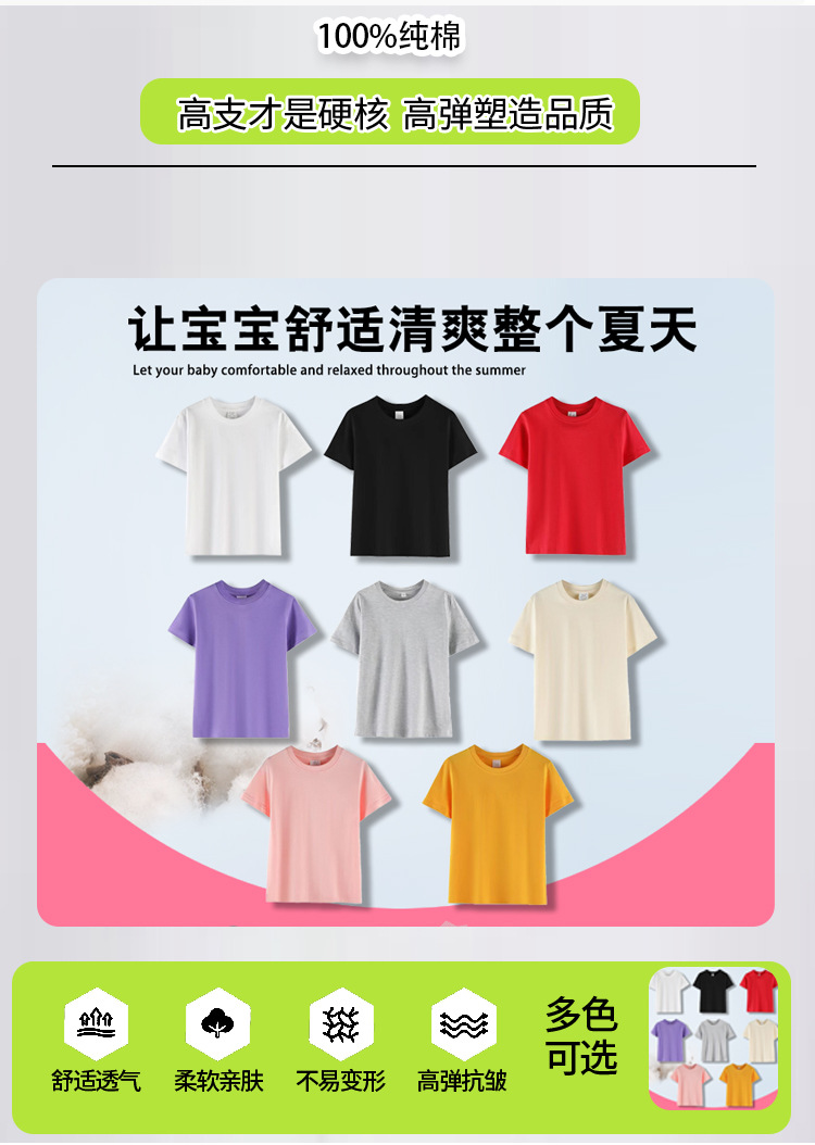 200G 어깨 어린이 티셔츠 느슨한 캐주얼 코튼 남성과 여성의 둥근 목 짧은 소매 티셔츠 인쇄 가능한 로고
