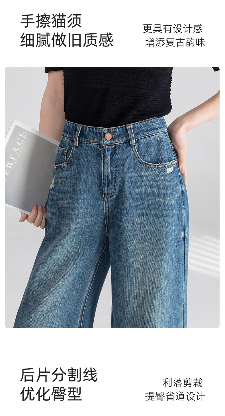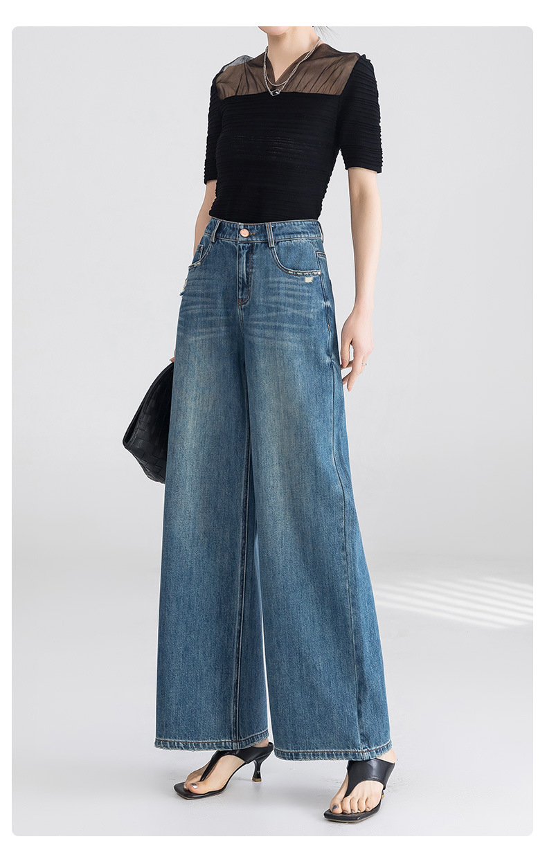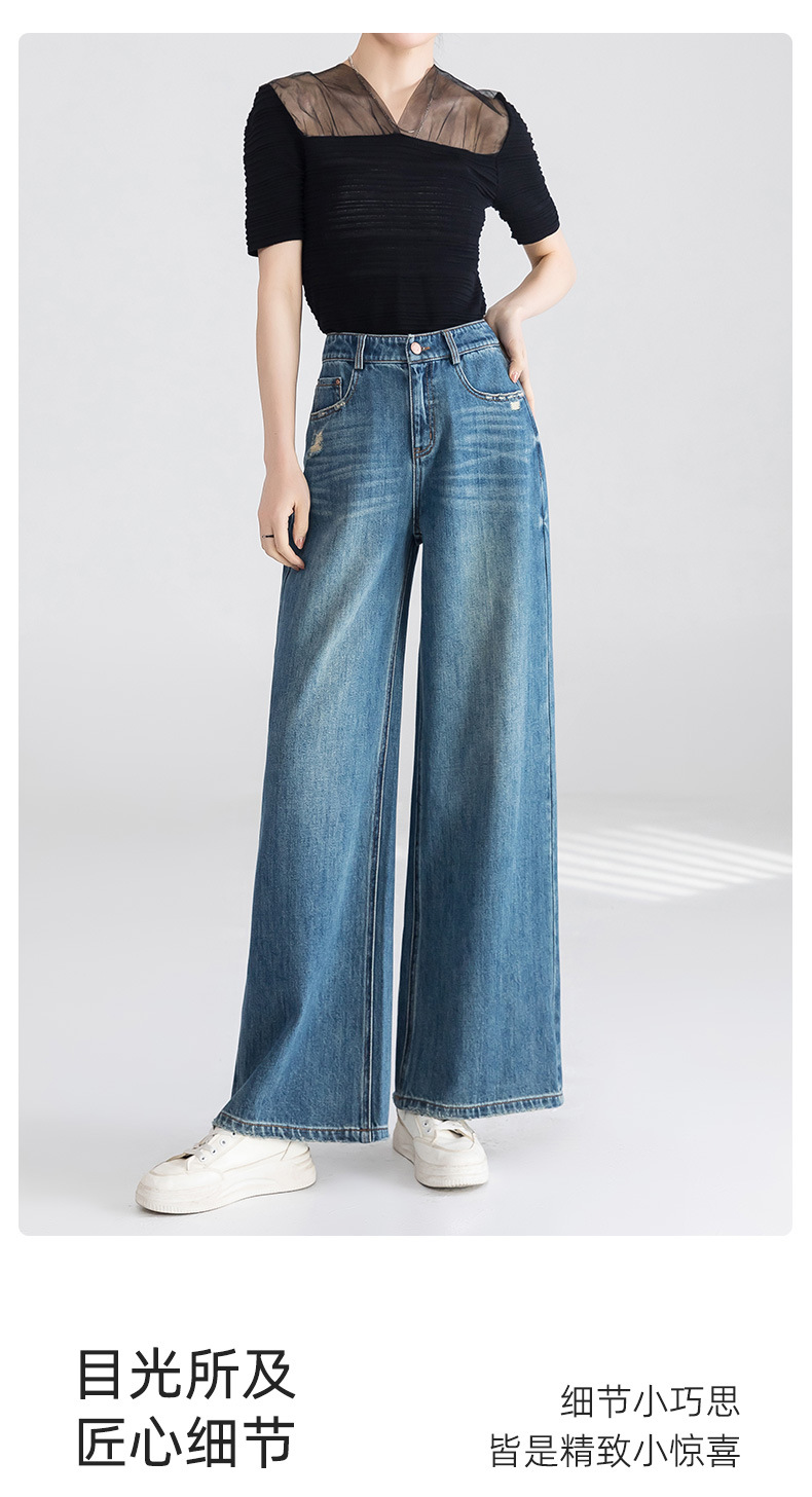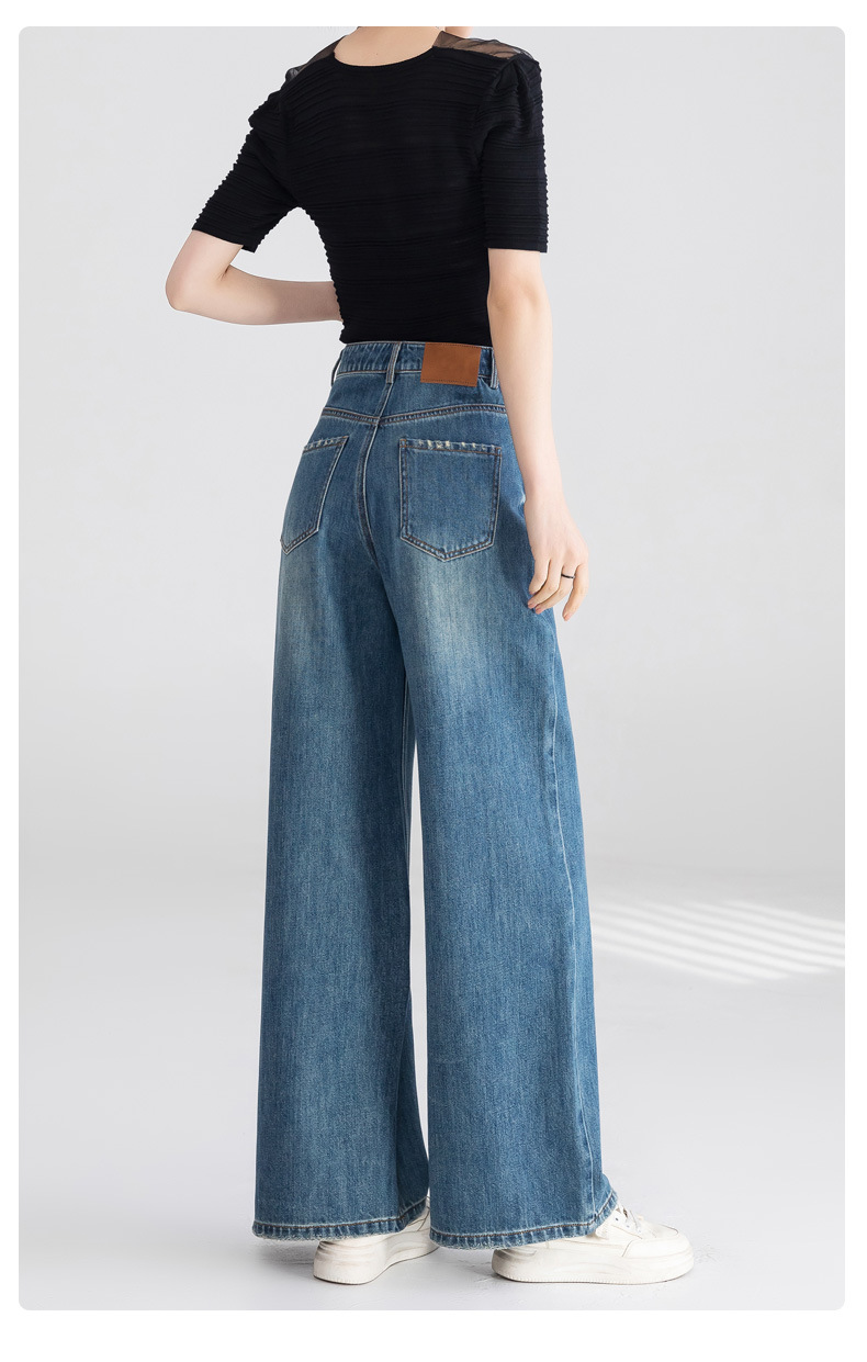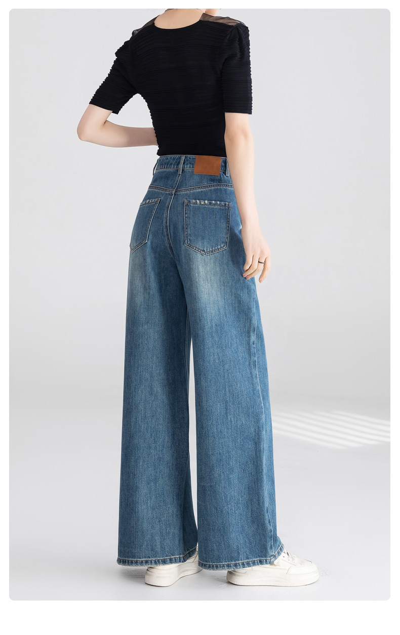 옌루이 순면 무탄성 스트레이트 데님 팬츠 여성용 2025년 신상 패셔너블 루즈핏 하이웨이스트 슬림 와이드 팬츠스토어 가기