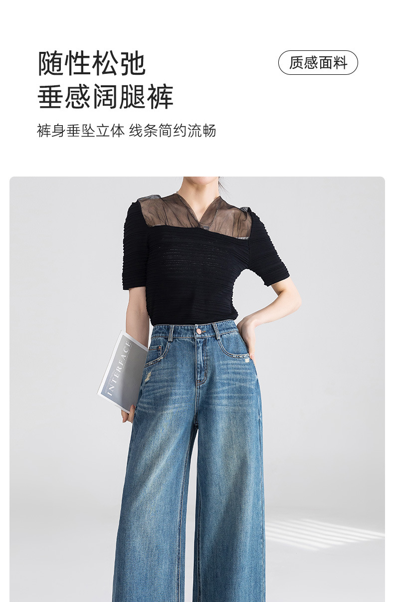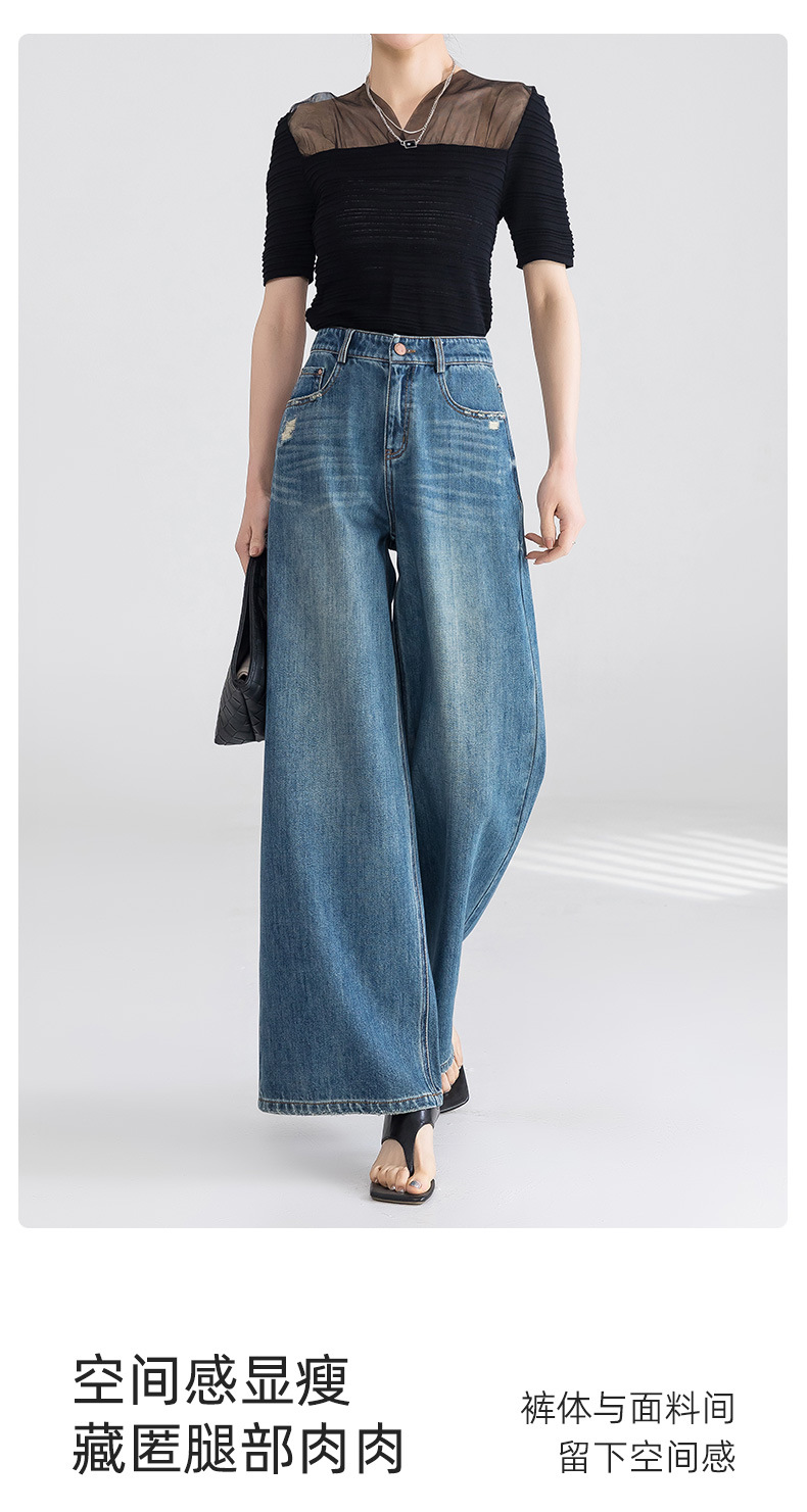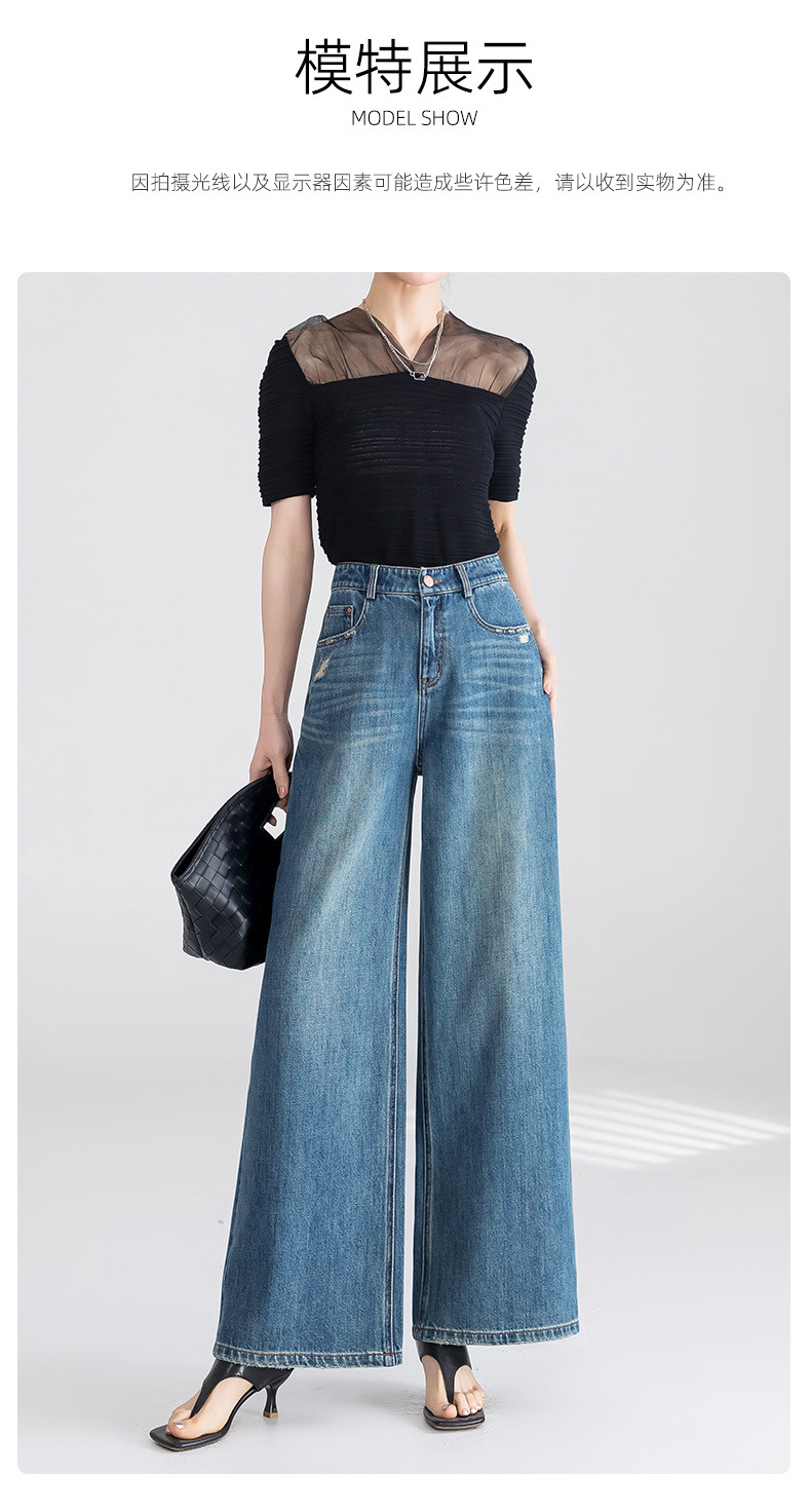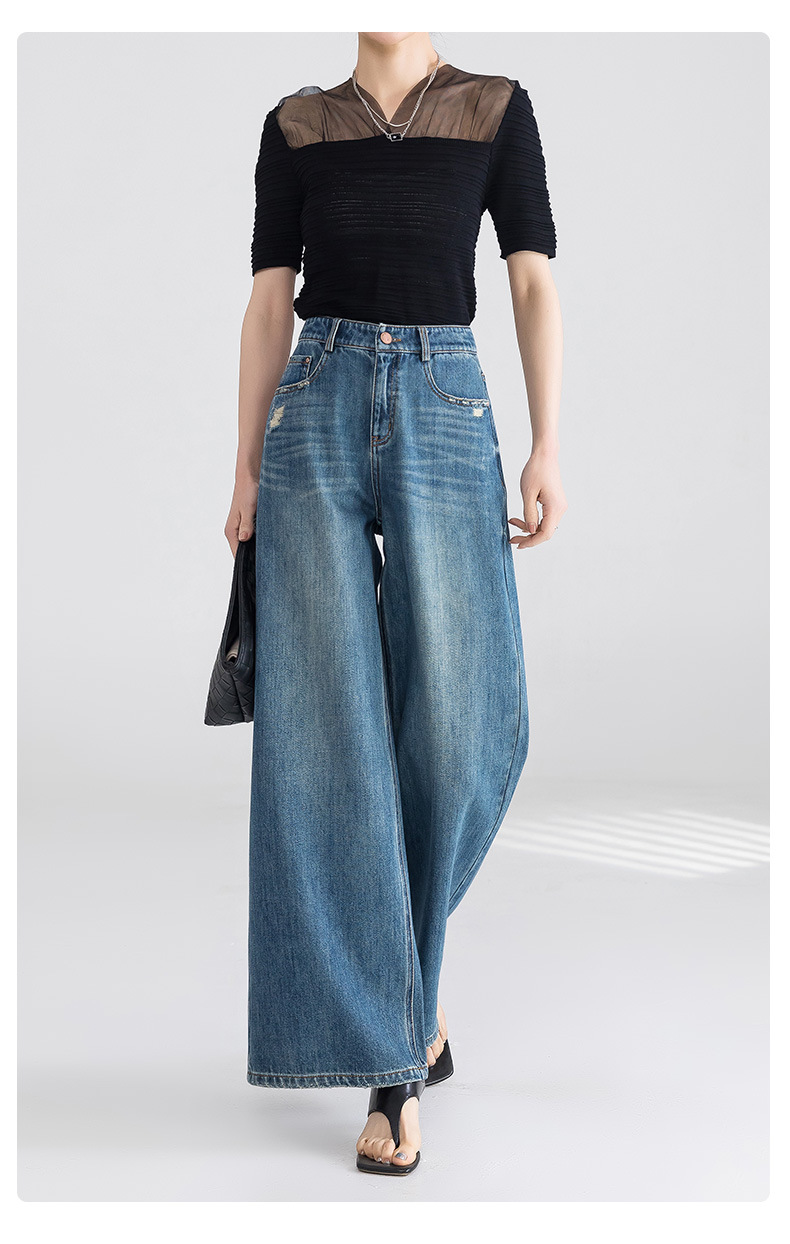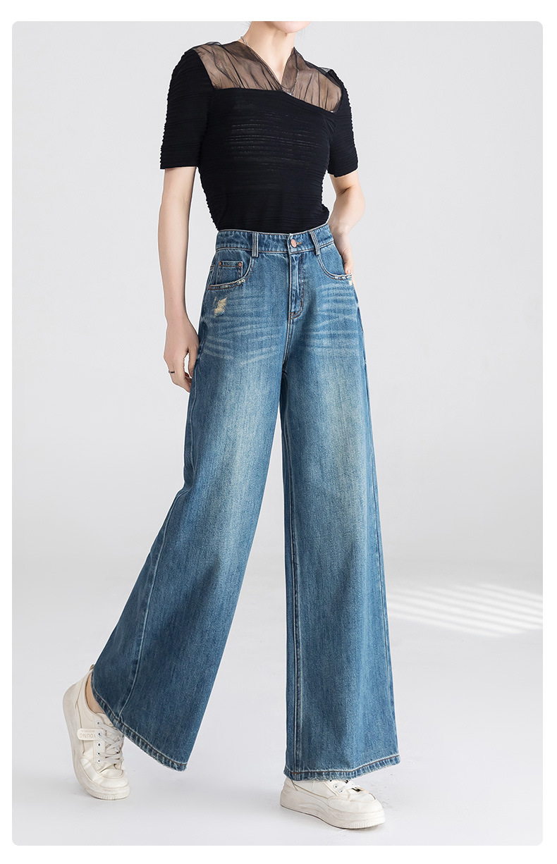 옌루이 순면 무탄성 스트레이트 데님 팬츠 여성용 2025년 신상 패셔너블 루즈핏 하이웨이스트 슬림 와이드 팬츠스토어 가기