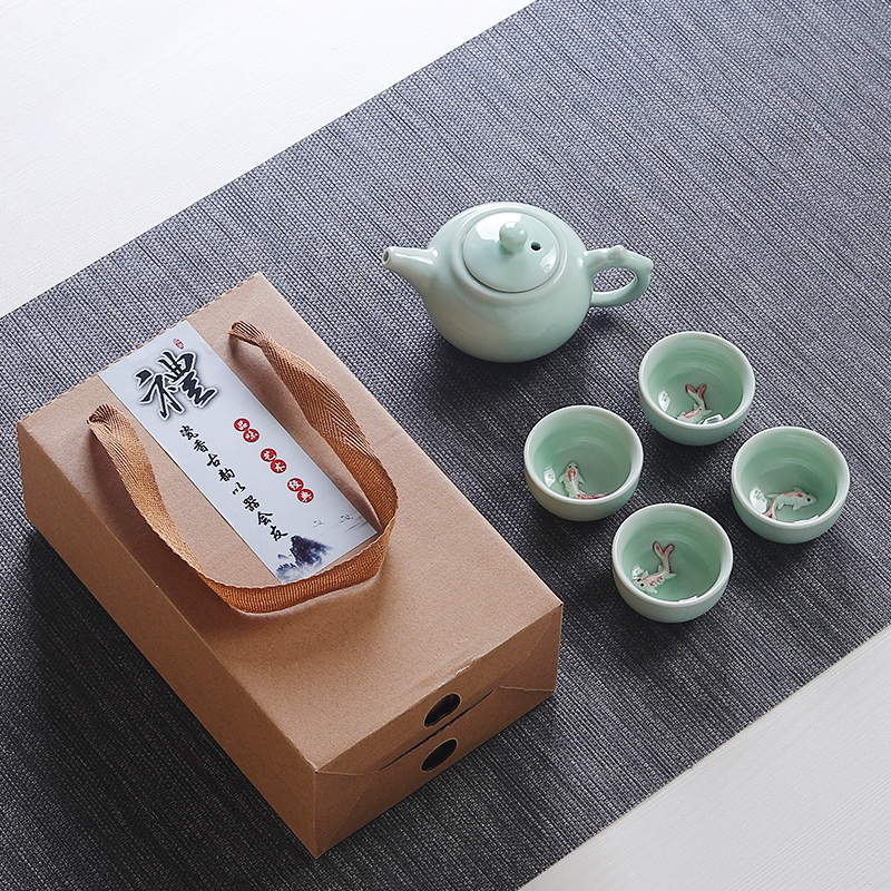• 핸드백 청자 어룡 손잡이 냄비 1 냄비 4 컵 수건 척