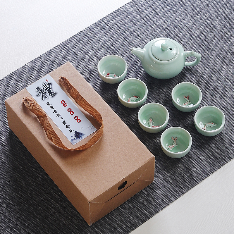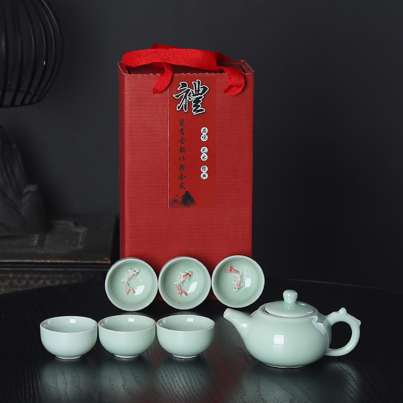 • 청자 어룡 손잡이 1냄비 6컵 선물상자
