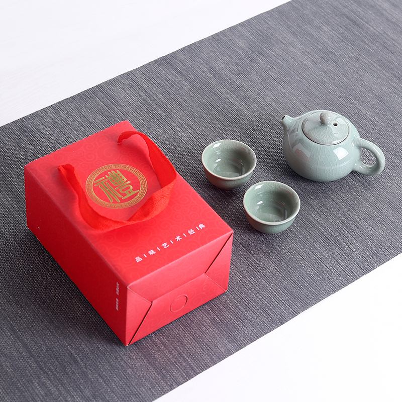 • Ge Kiln Xishi 매화 녹색 1 냄비 2 컵 핫 스탬핑 상자