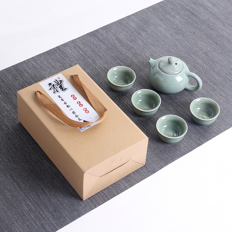• Ge Kiln Xishi 매화 녹색 1 냄비 4 컵 핫 스탬핑 상자