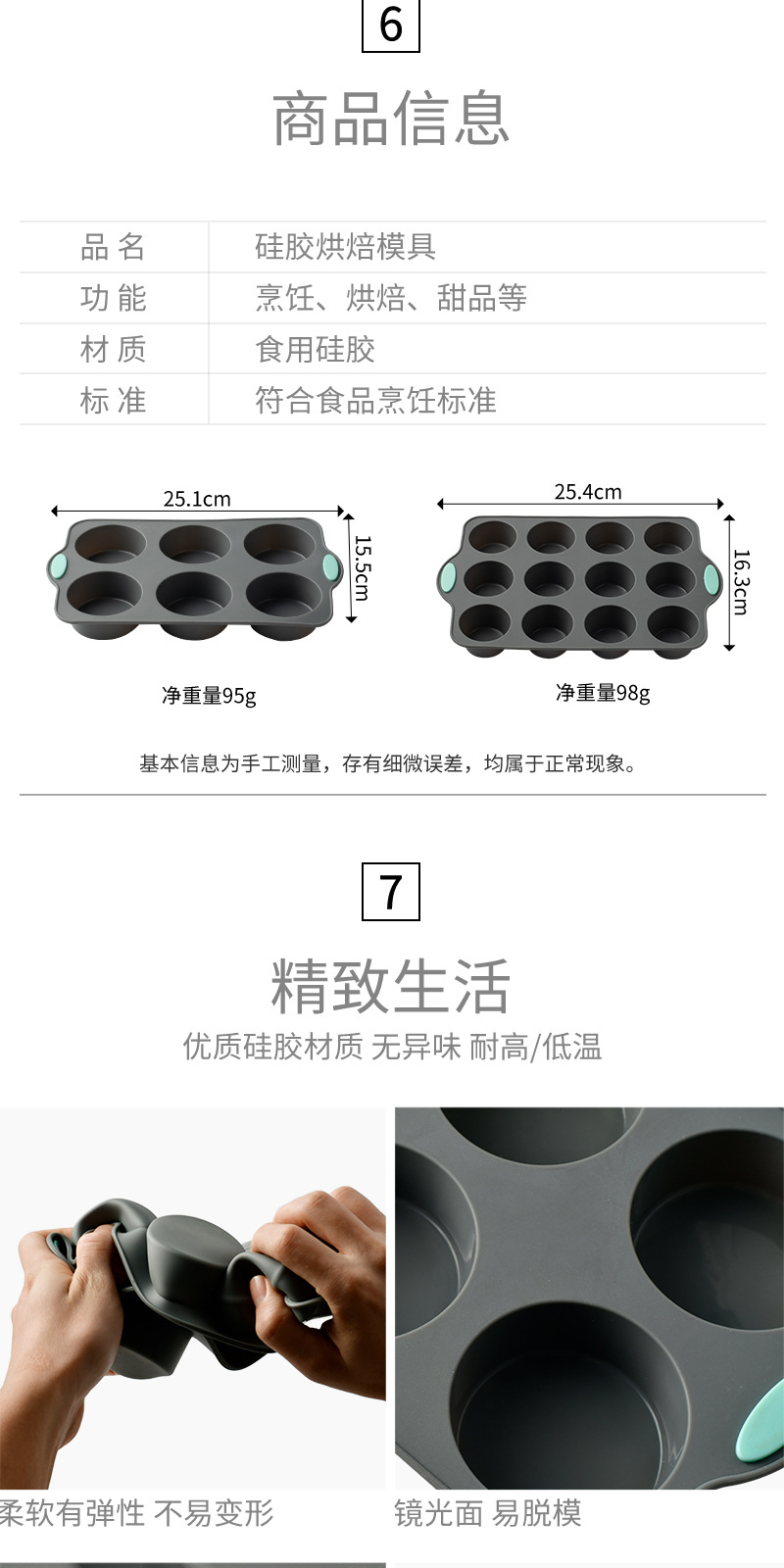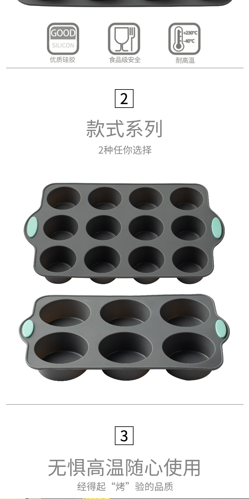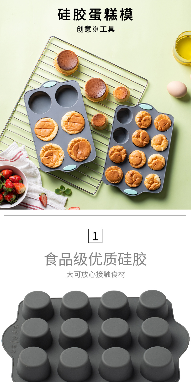 실리콘 단열 가장자리 6 구멍 12 구멍 둥근 케이크 베이킹 트레이 계란 타르트 트레이 고온 내성 비 스틱 베이킹 트레이 베이킹 도구