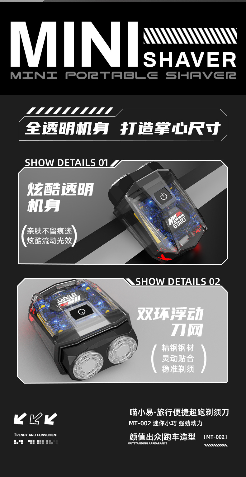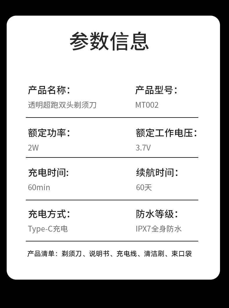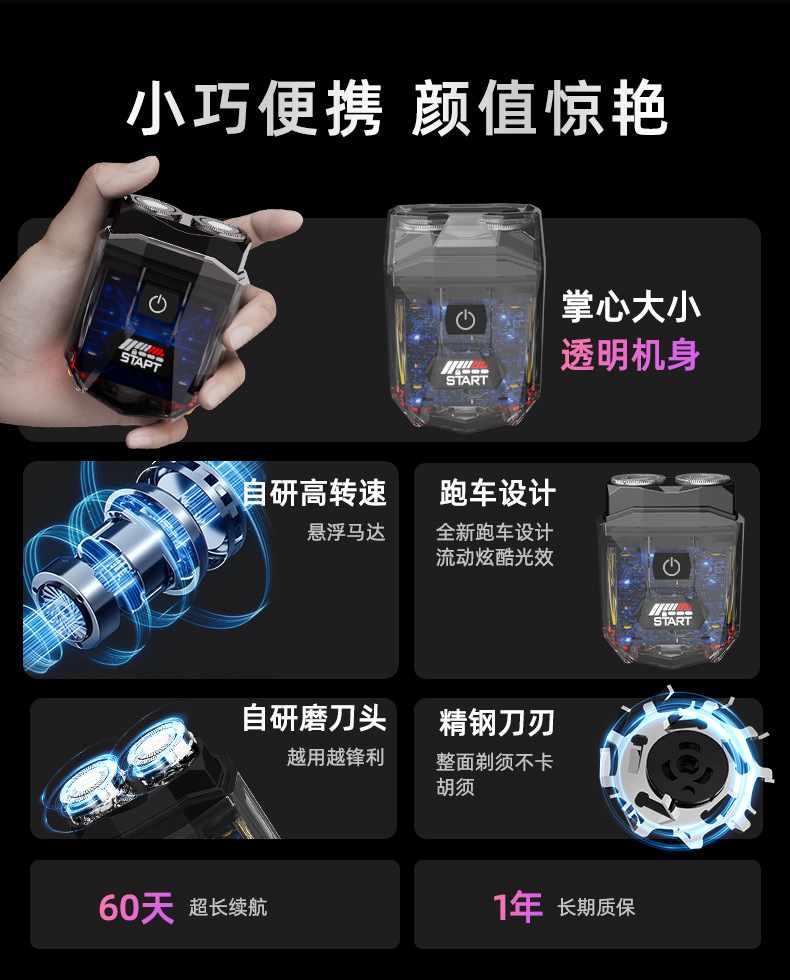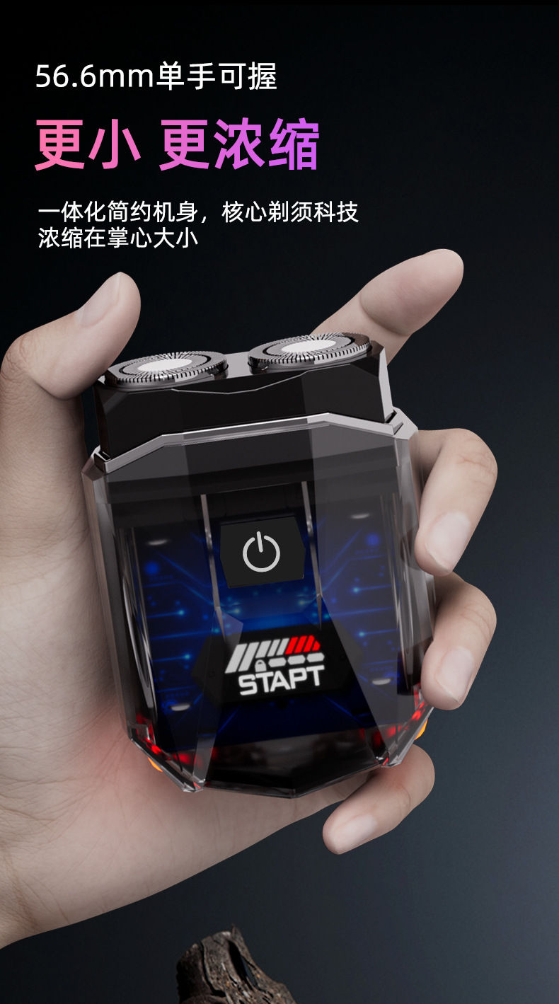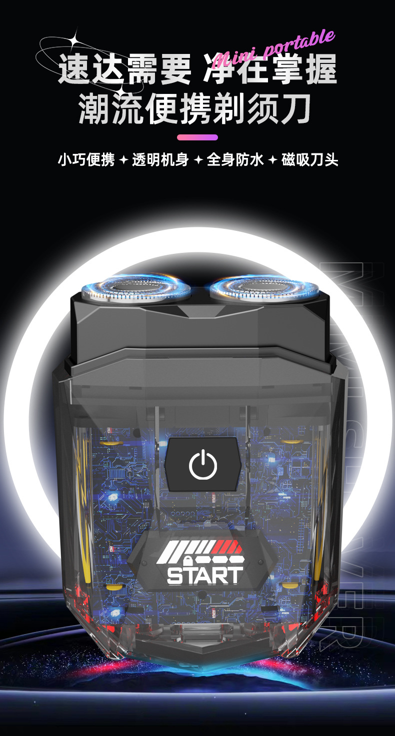 국경 투명 더블 헤드 면도기 남성용 고성능 전기 휴대용 면도기 충전식 전신 세척