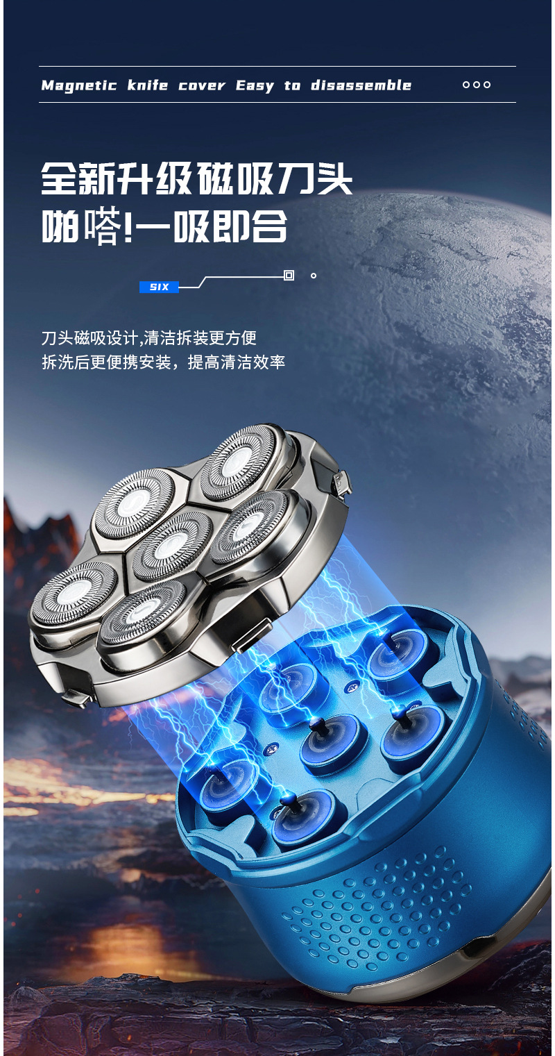 6 머리 대머리 유물 면도 머리 특별한 자기 면도 남자 머리 클리퍼 푸셔 전기 면도기 10W 높은 힘스토어 가기