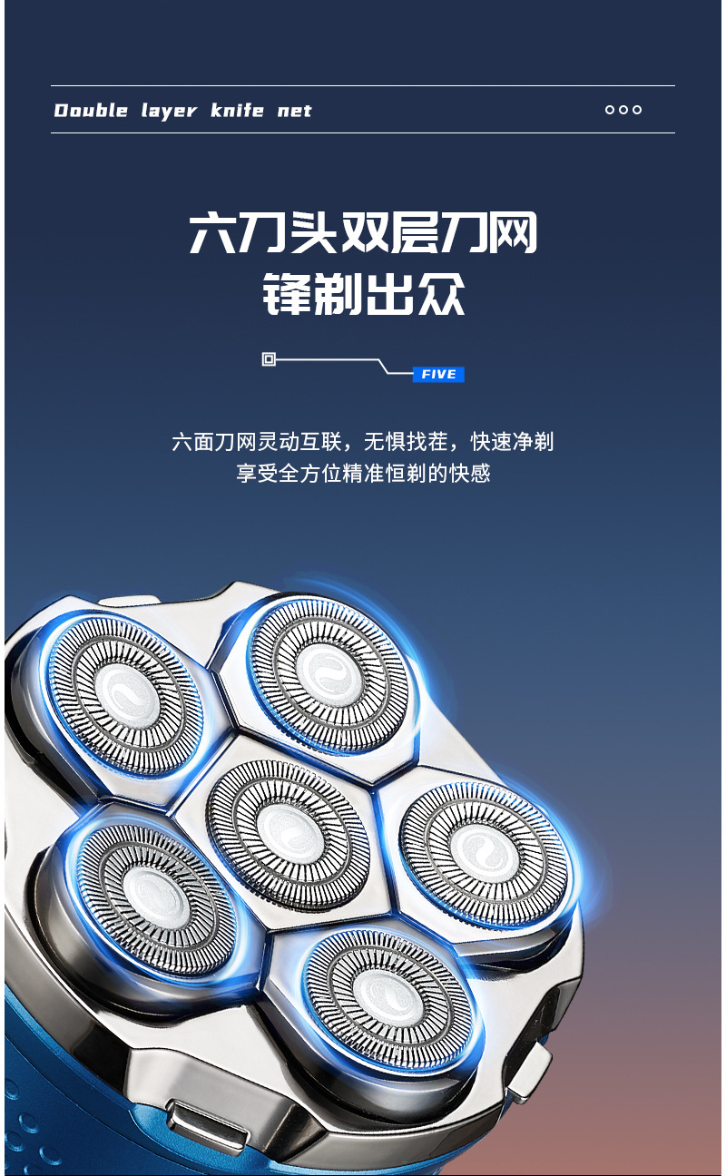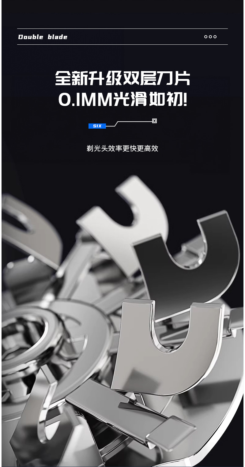 5:旋转式6D刀头双环刀片,立体刀头结构。