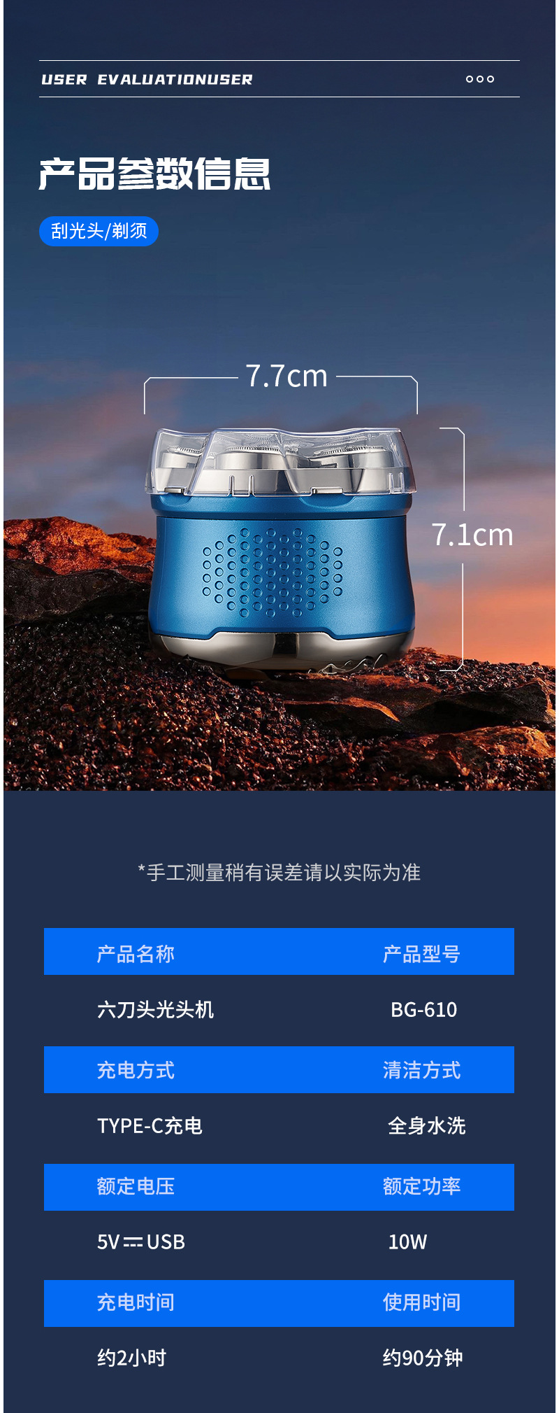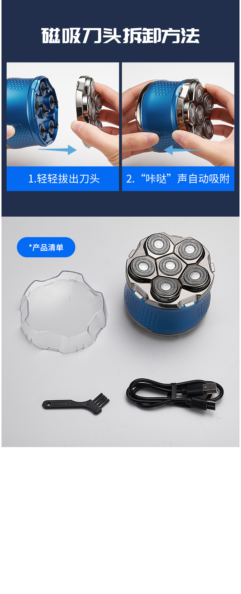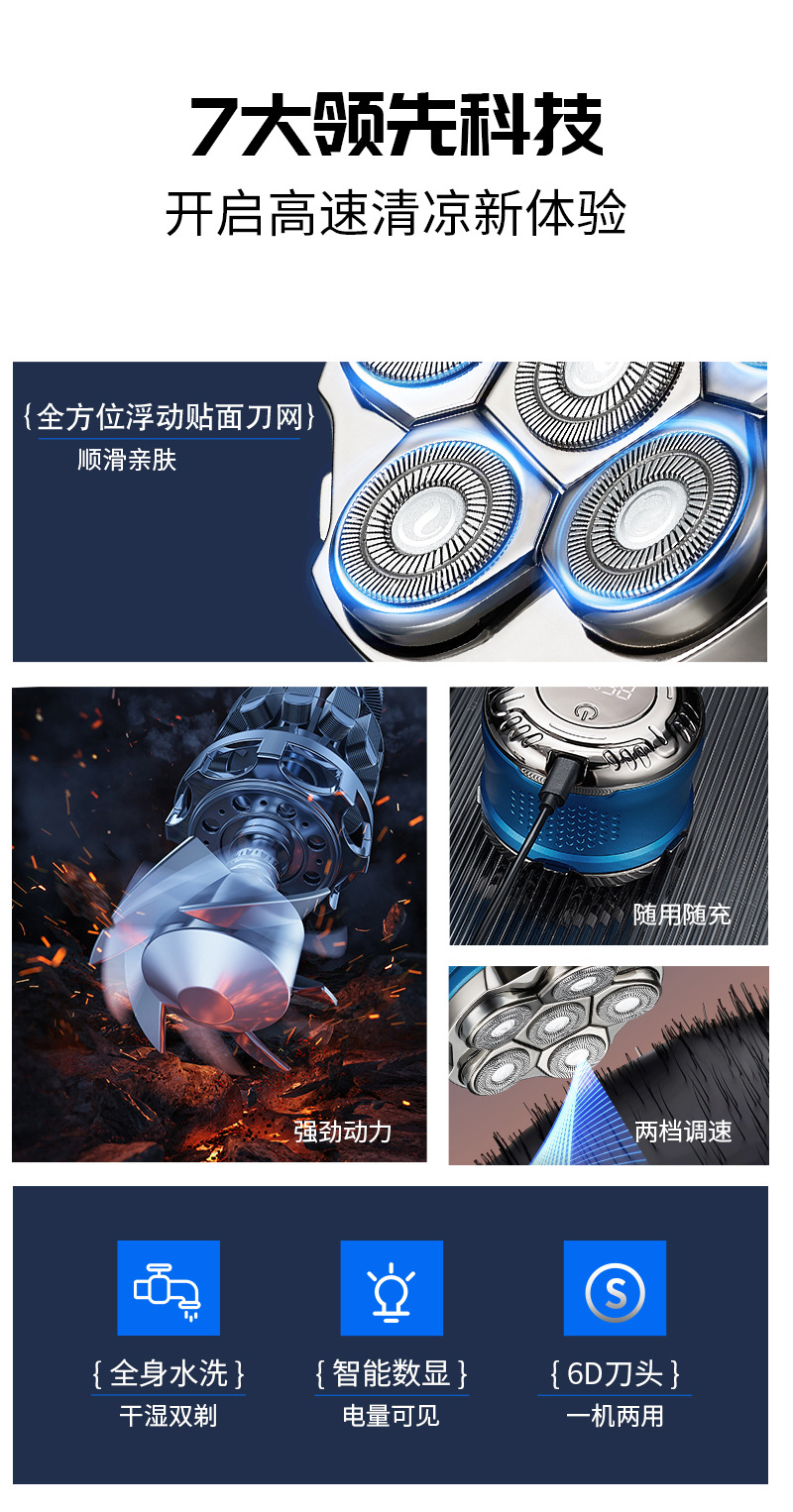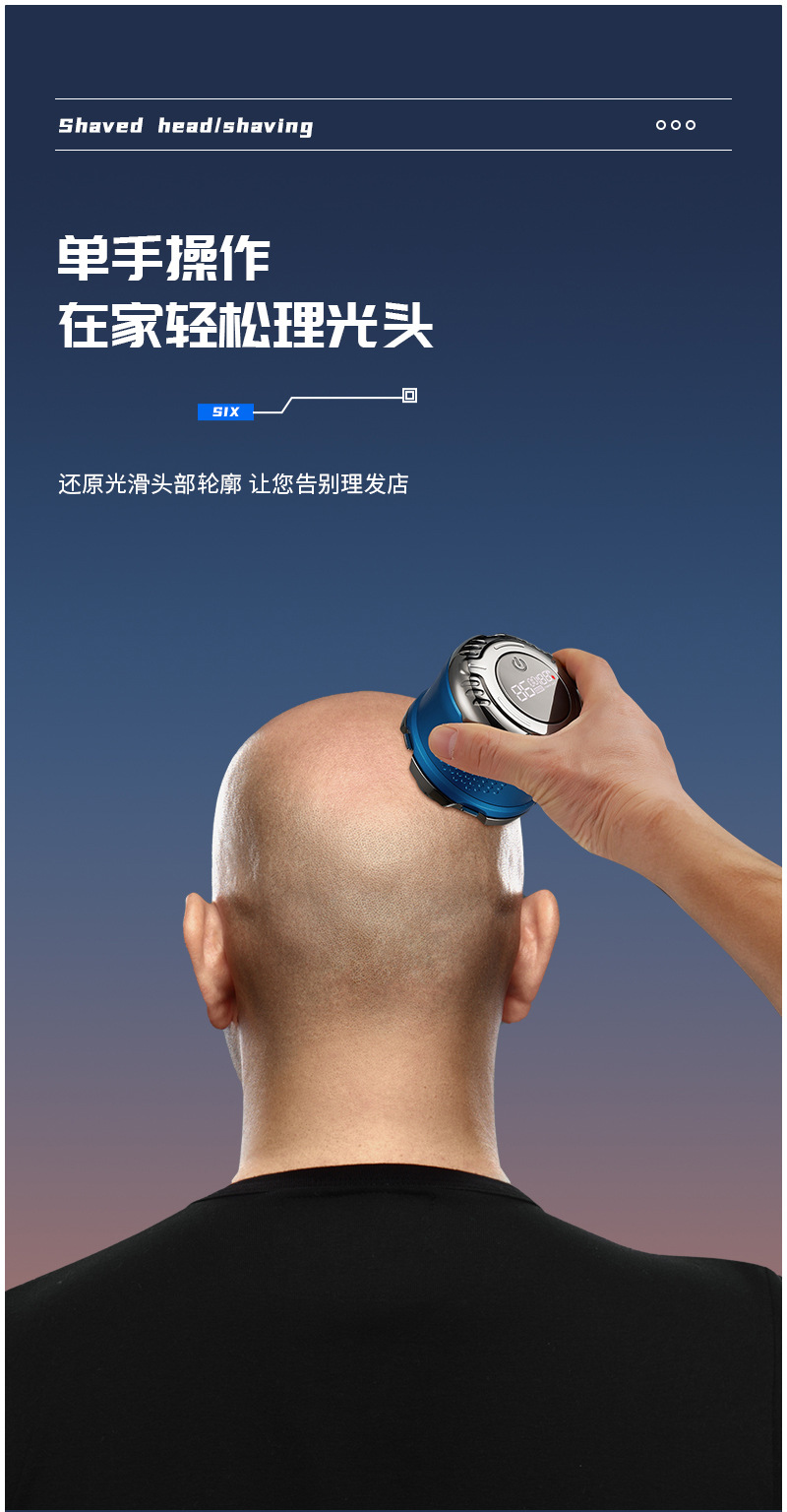 1. 全身水洗光头理发器,非刀头水洗。