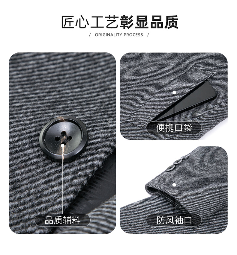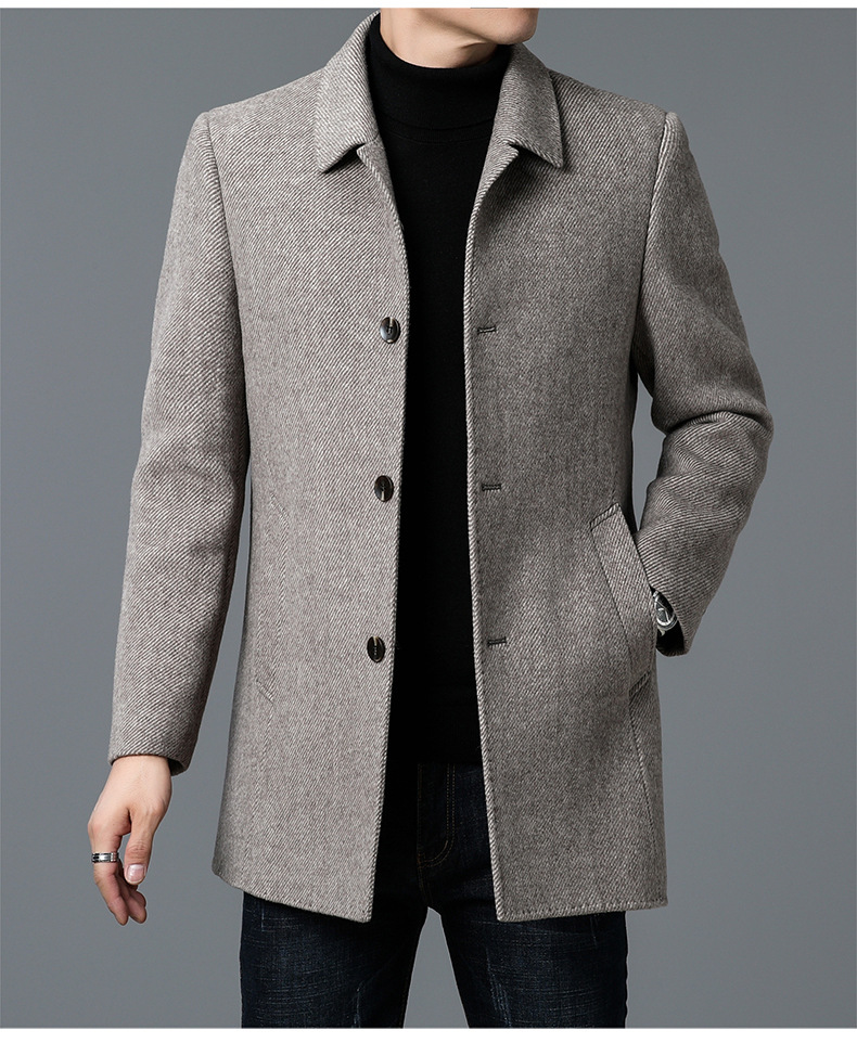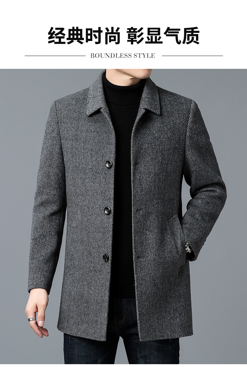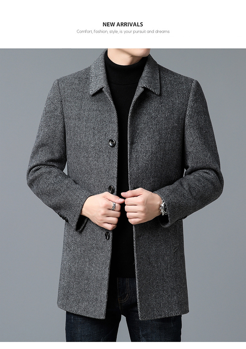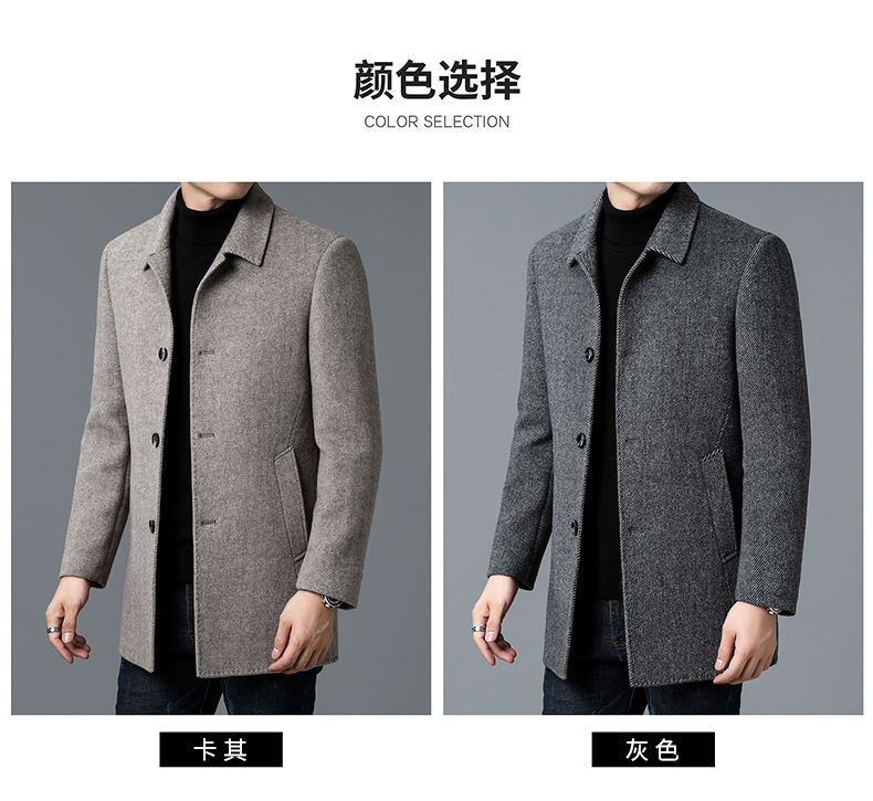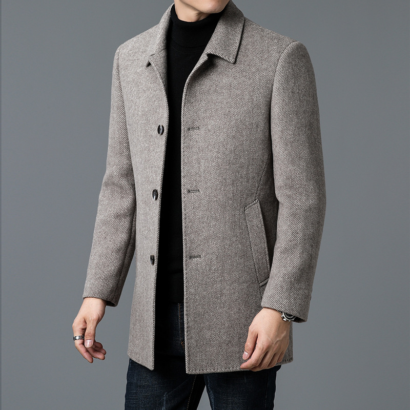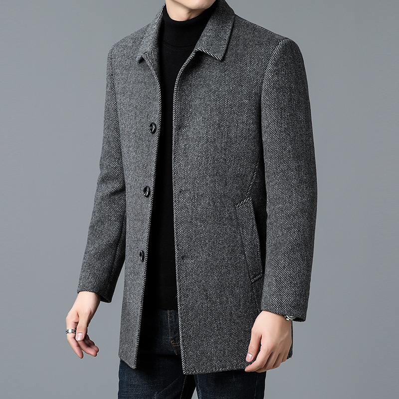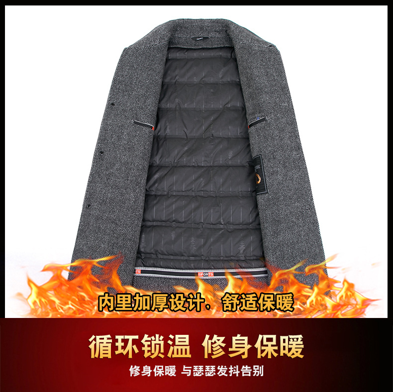 고급 남자 울 코트 중년 아빠의 가을과 겨울 양면 두꺼운 중간 길이의 거위 라이너 캐시미어 재킷