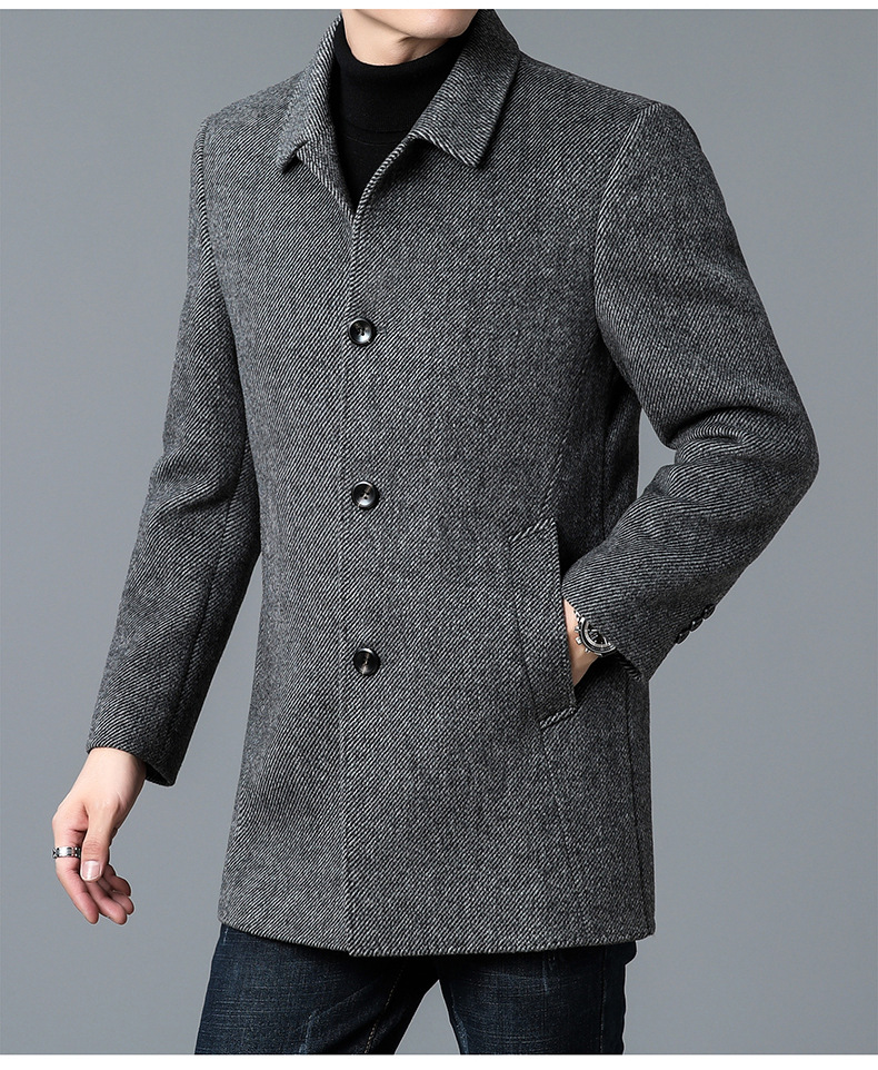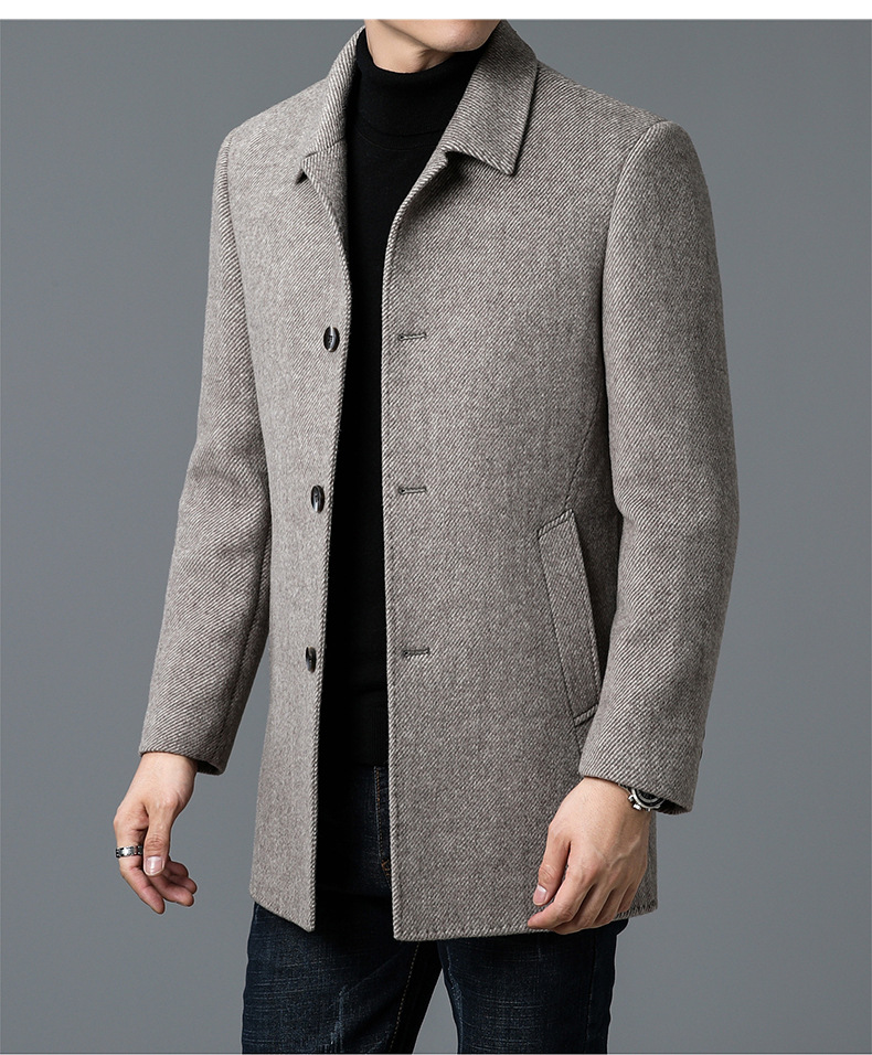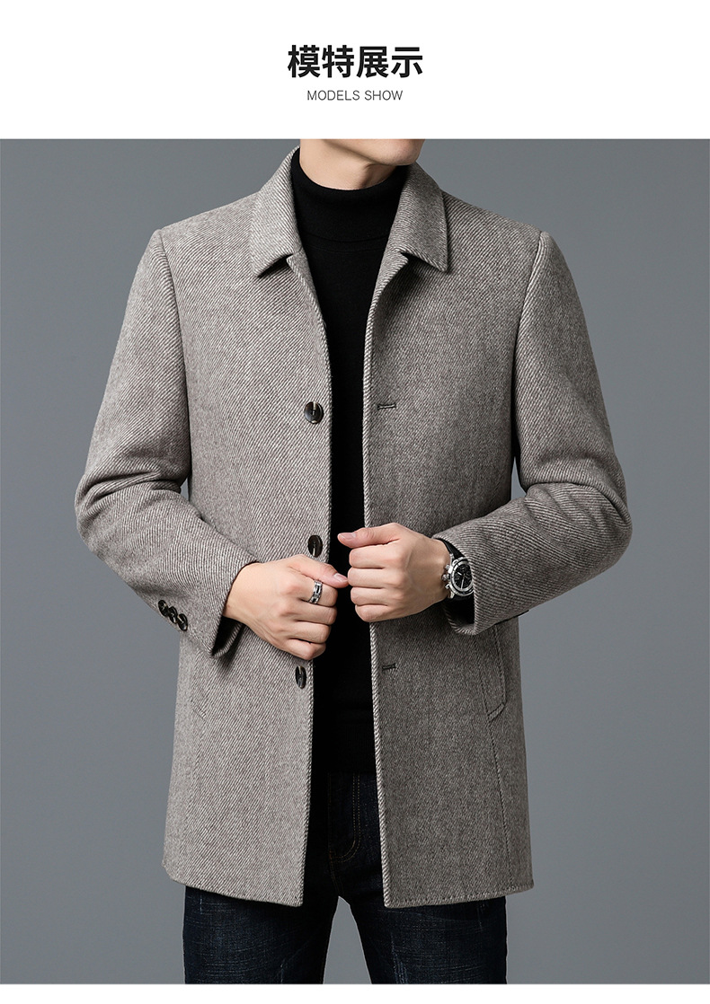 고급 남자 울 코트 중년 아빠의 가을과 겨울 양면 두꺼운 중간 길이의 거위 라이너 캐시미어 재킷스토어 가기
