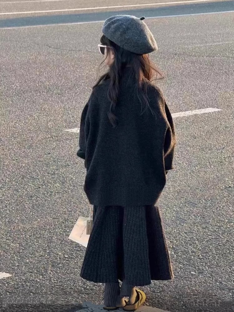 한국 아동복 어린이 스웨터 2024 가을과 겨울 한국 여자 패션 조커 울 스커트 어린이 세트