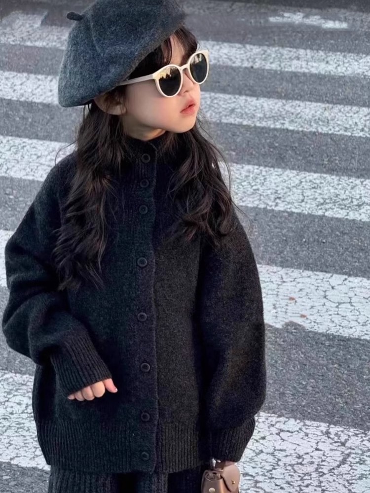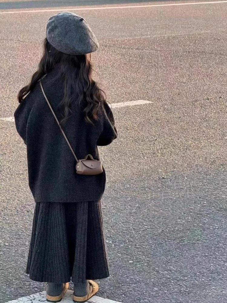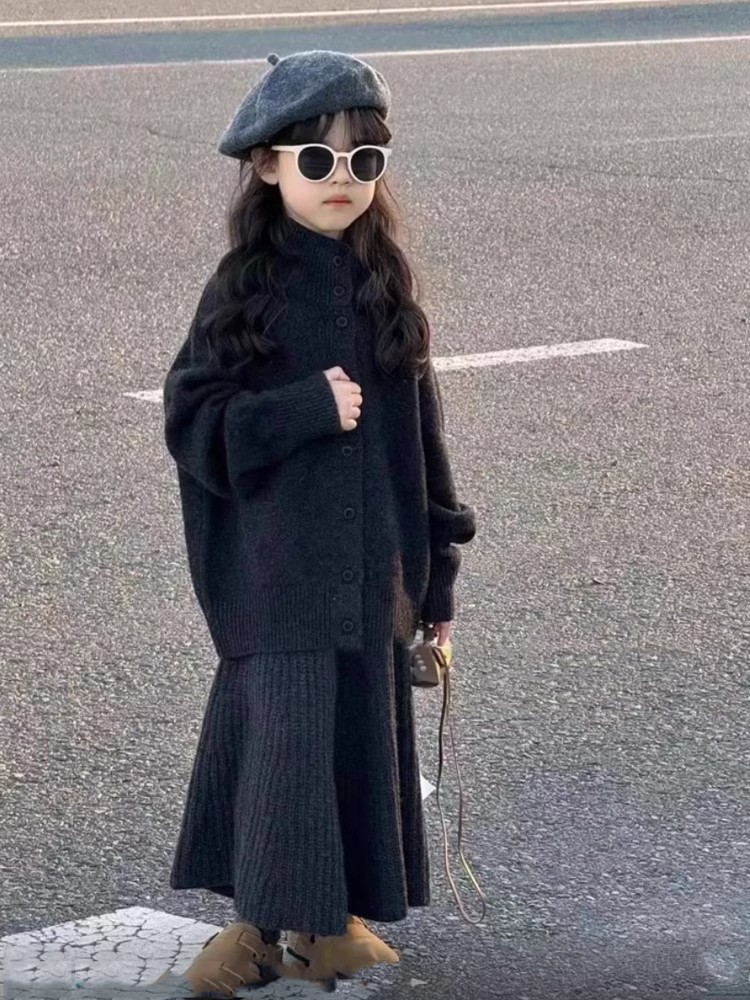 한국 아동복 어린이 스웨터 2024 가을과 겨울 한국 여자 패션 조커 울 스커트 어린이 세트스토어 가기