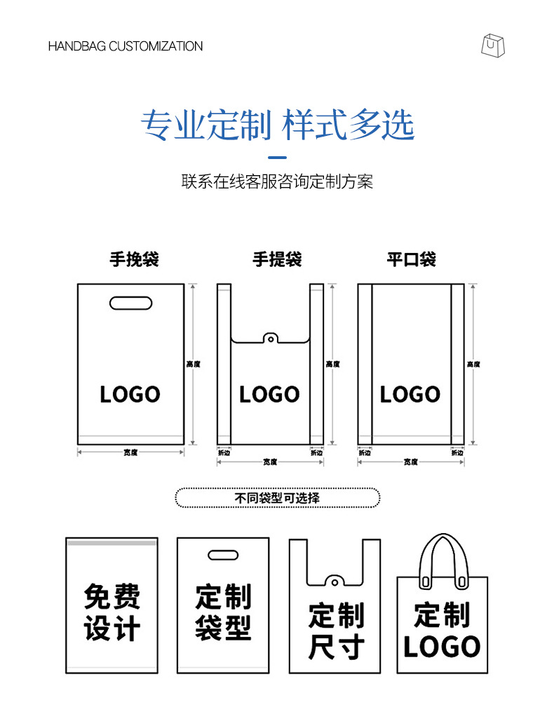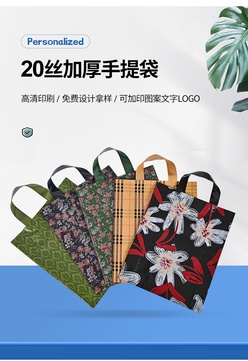 두꺼운 PE 가방 비닐 봉투 의류 매장 쇼핑백 인쇄 로고 고급 질감 선물 가방 핸드백 도매 준비 완료
