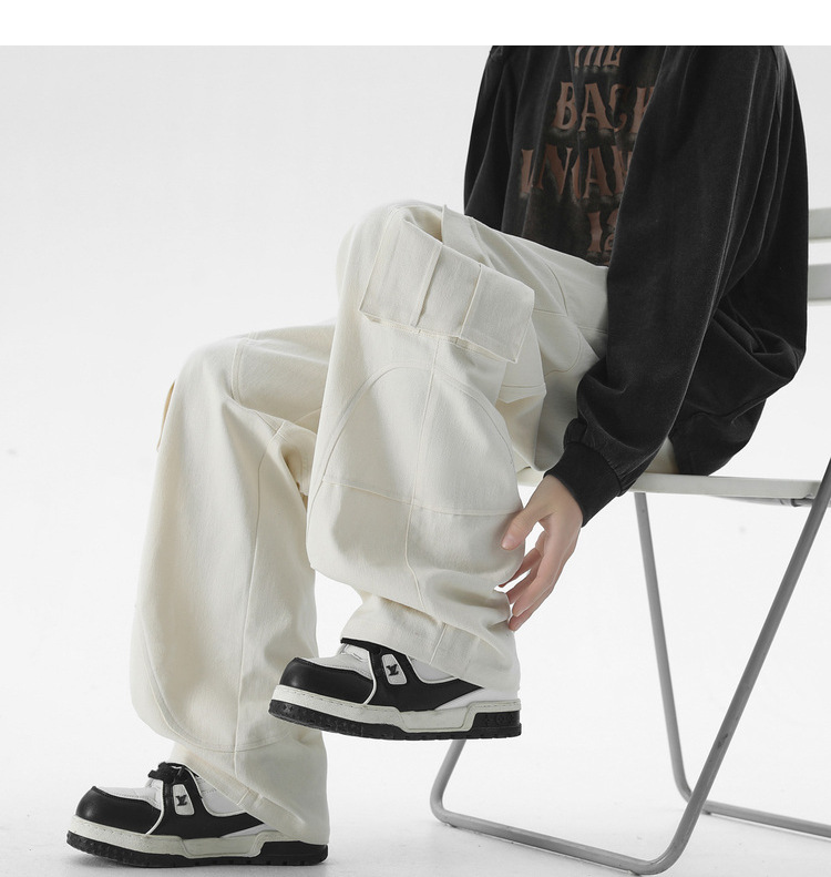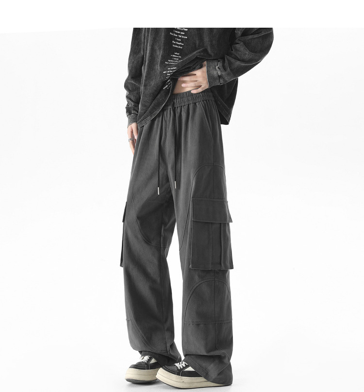 Jian Heng 트렌디 브랜드 미국 작업복 스트레이트 바지 남성 와이드 레그 팬츠 하이 엔드 두꺼운 청소년 워시 폭행 바지 여성스토어 가기