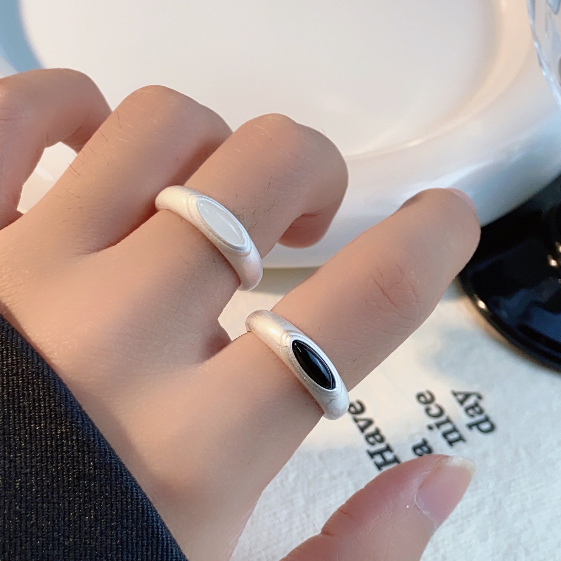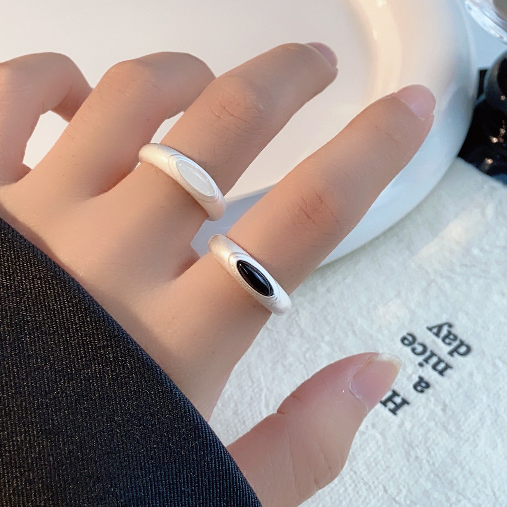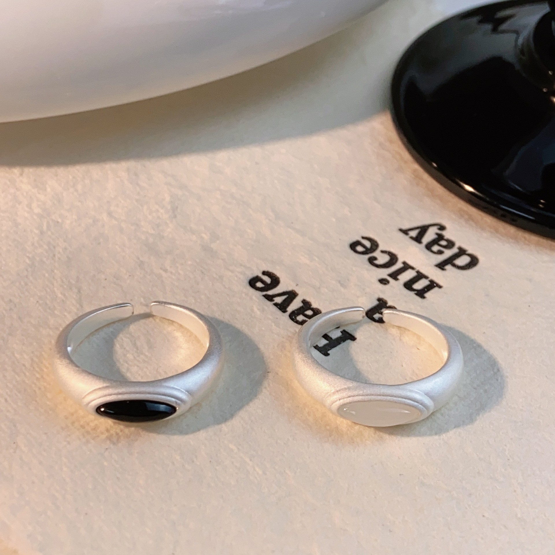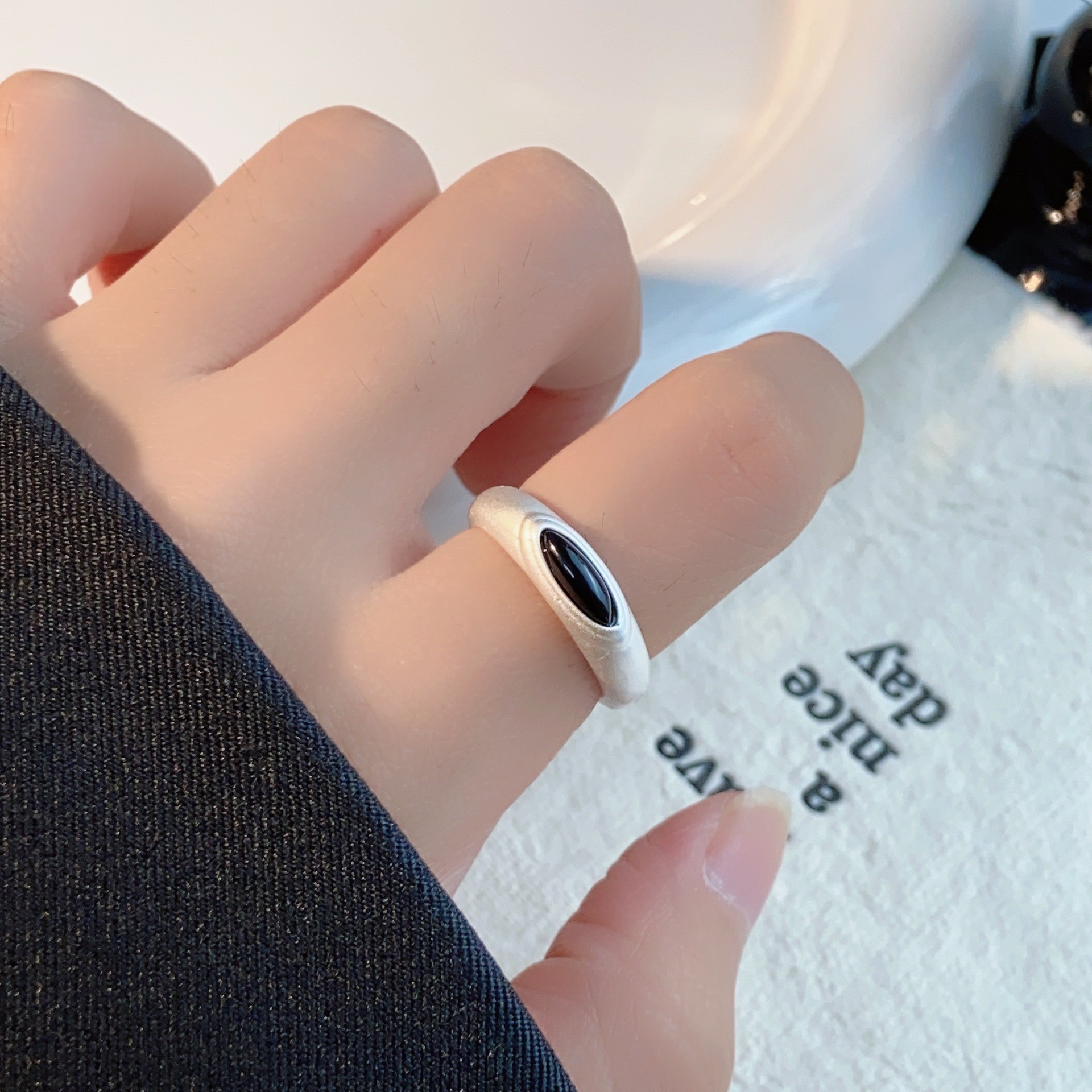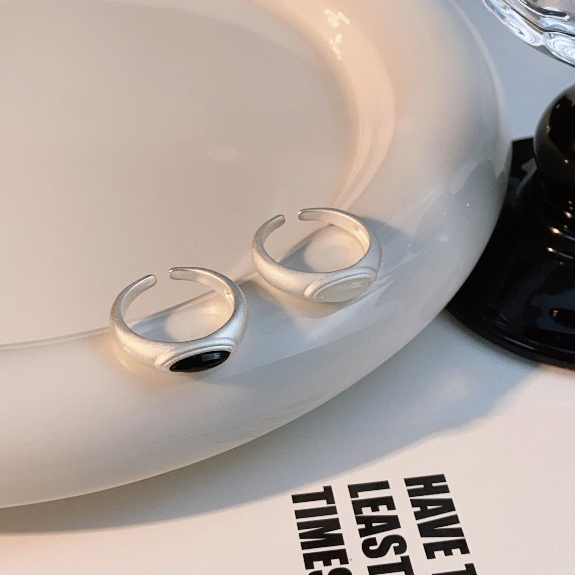 간단한 패션 블랙 오닉스 오픈 링 여성 독특한 틈새 디자인 매트 핑거 링 올 매치 링 액세서리 트렌디스토어 가기