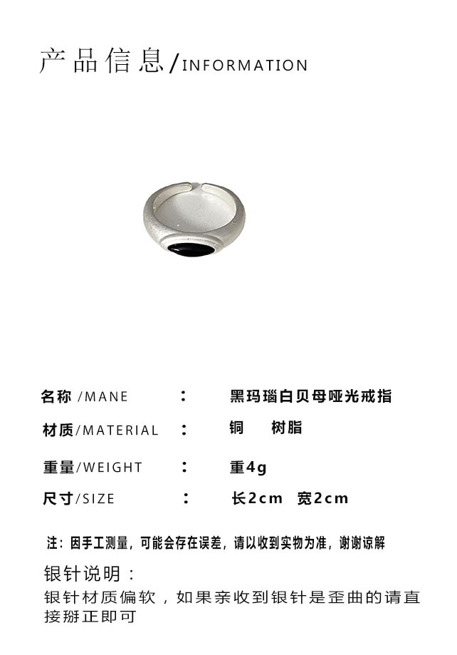 • 블랙 오닉스 화이트 마더 오브 펄 매트 링 J0864A