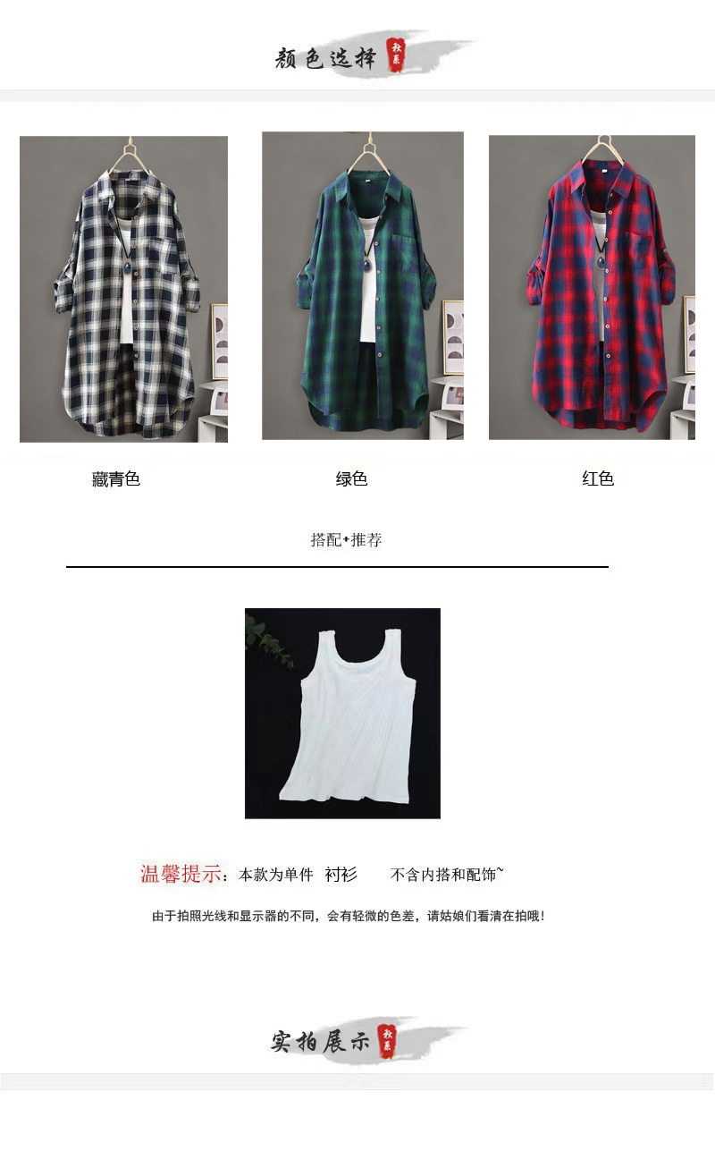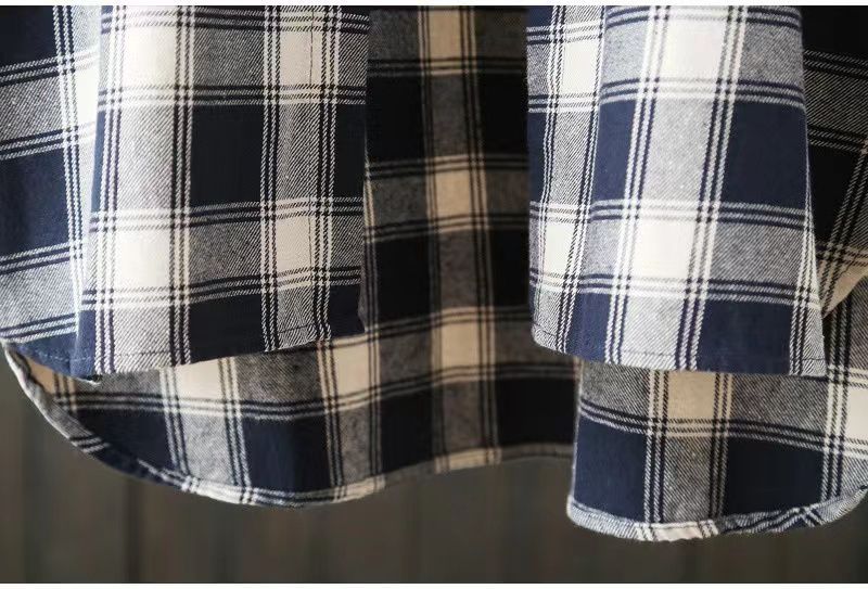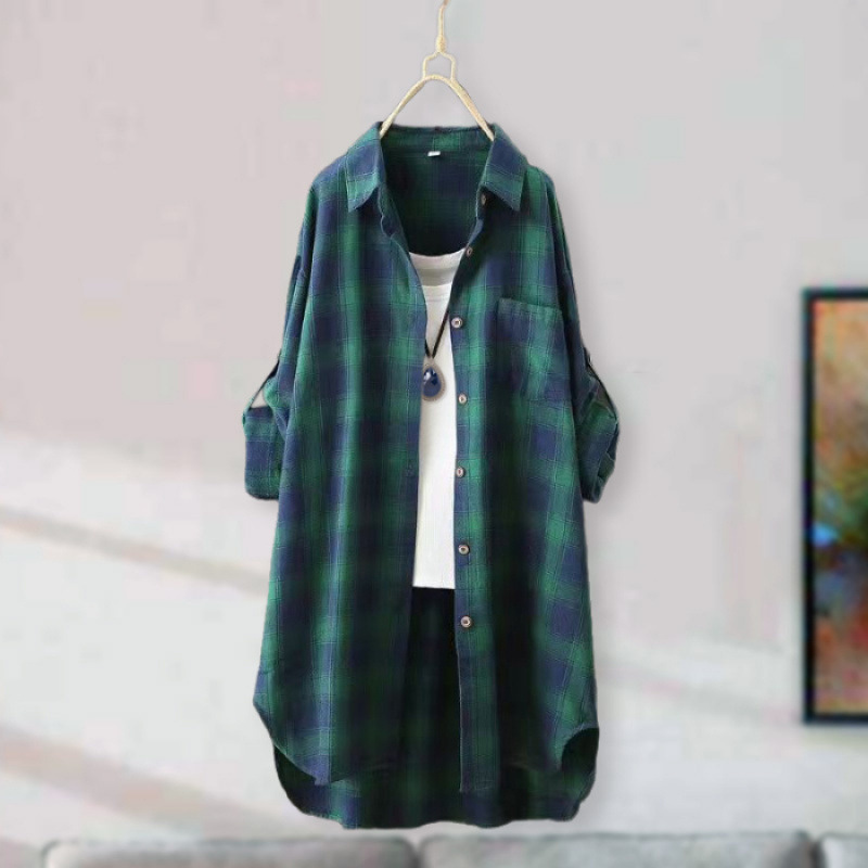 여성용 체크무늬 긴팔 셔츠, 레트로 스타일 중간 길이 상의, 루즈핏 얇은 코트, 봄 가을 셔츠, 컬러 직조 공법스토어 가기