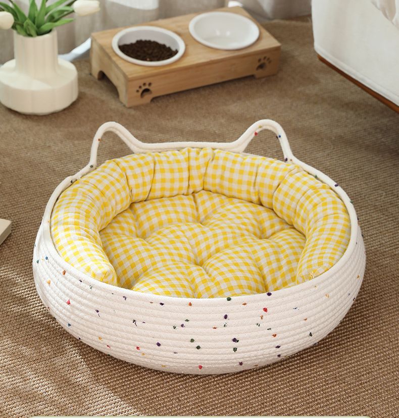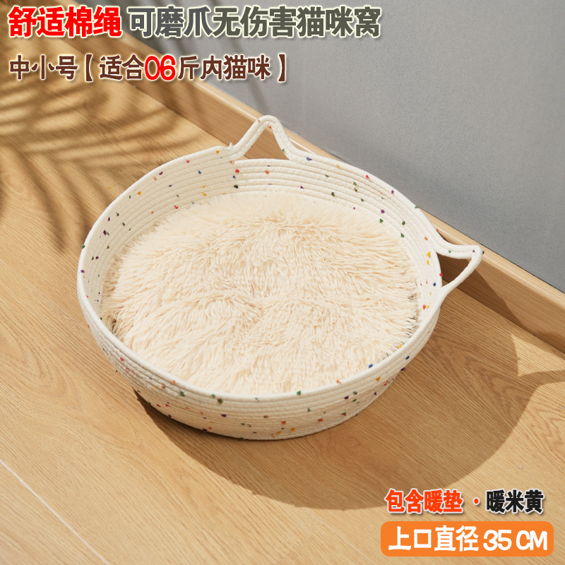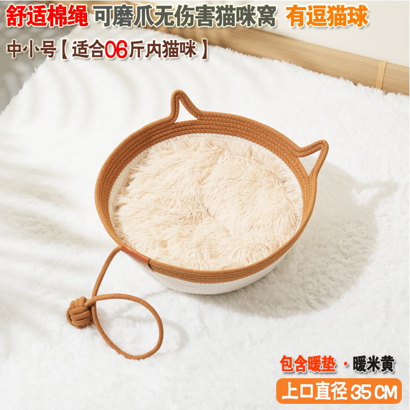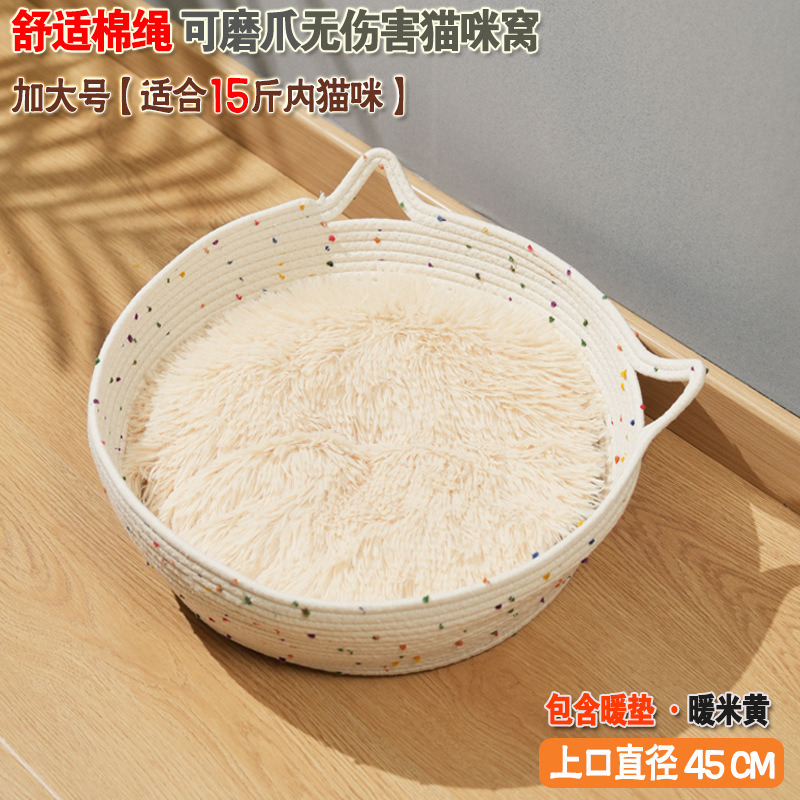 코튼 로프 짠 고양이 둥지 애완 동물 사계절 보편적 인 고양이 스크래치 보드 고양이 사육장 마모 방지 더러운 이동식 및 빨 수있는 재고 도매