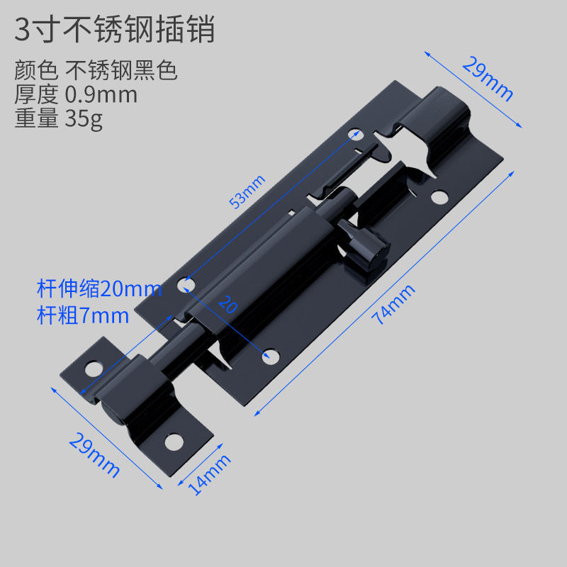 스테인레스 스틸 볼트 도어 잠금 기숙사 나무 문 도난 방지 볼트 화장실 블랙 구식 작은 볼트
