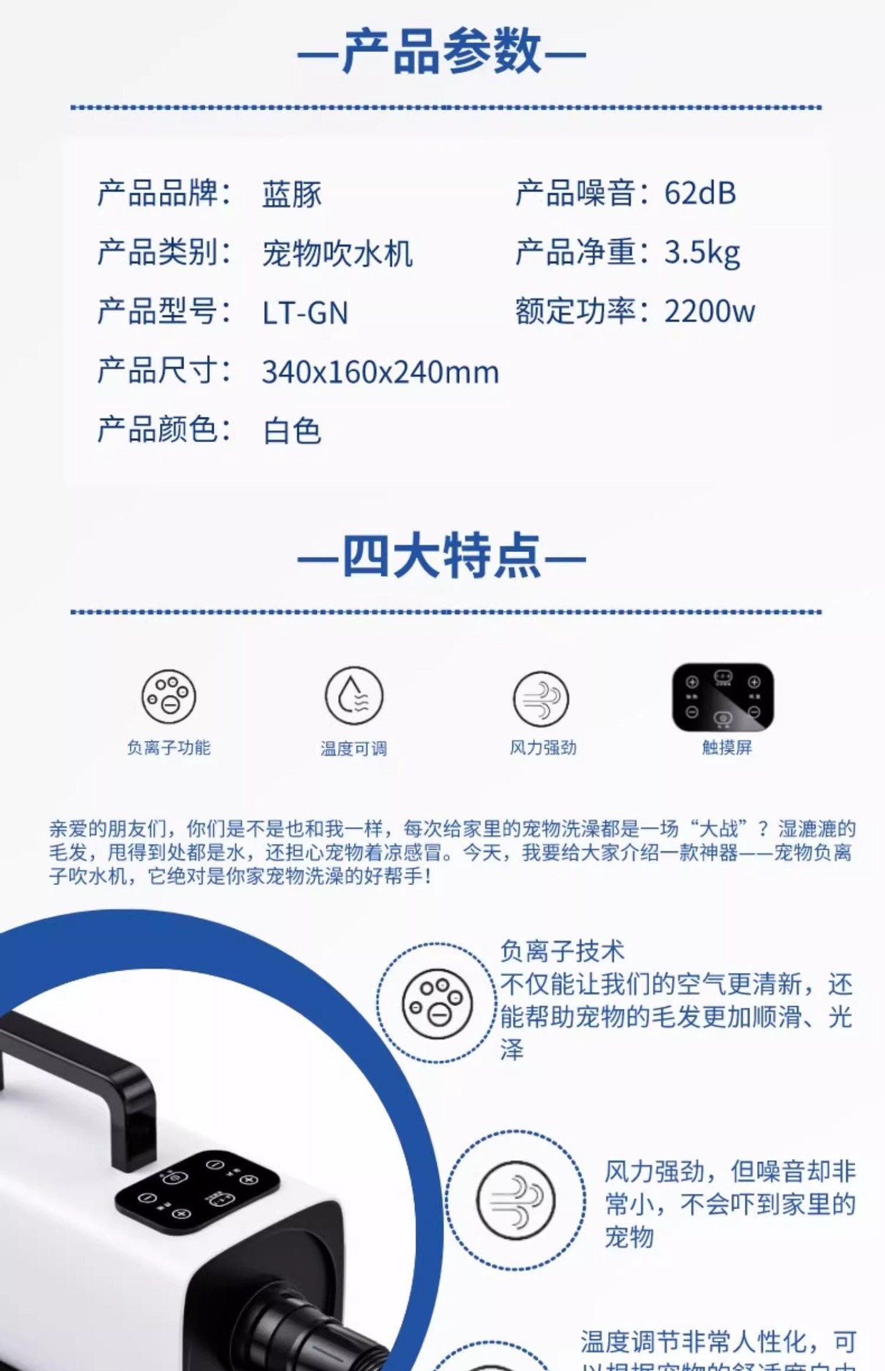블루 돌고래 LT-GN 애완 동물 헤어 드라이어 가정용 부정적인 이온 헤어 드라이어 고양이 건조 큰 개 특별한 목욕 헤어 헤어 블로우