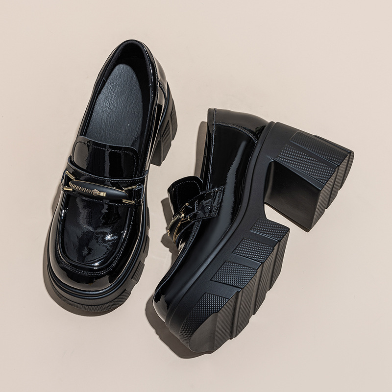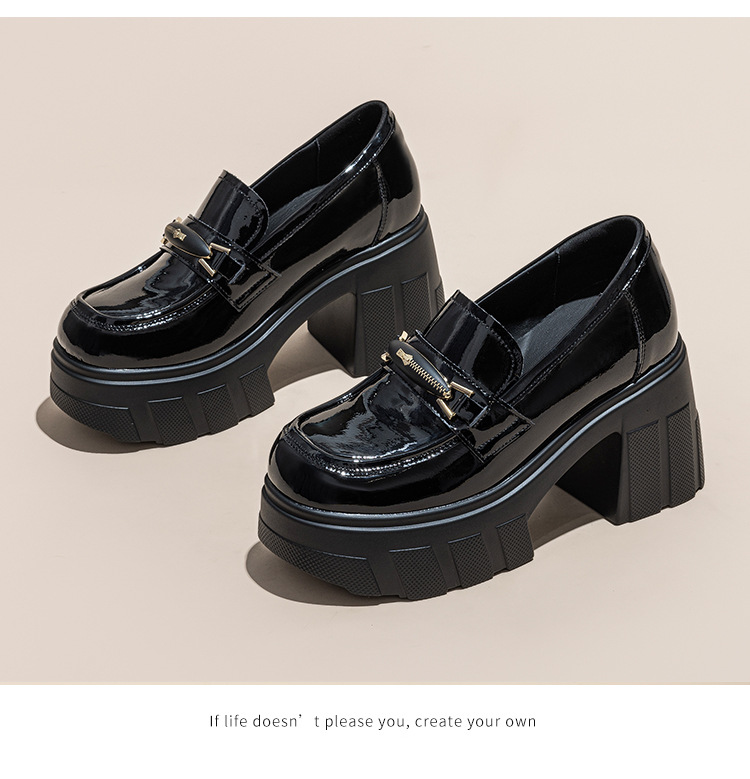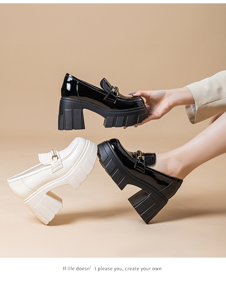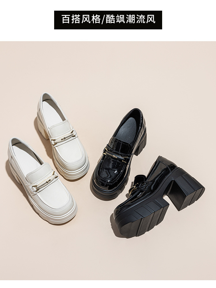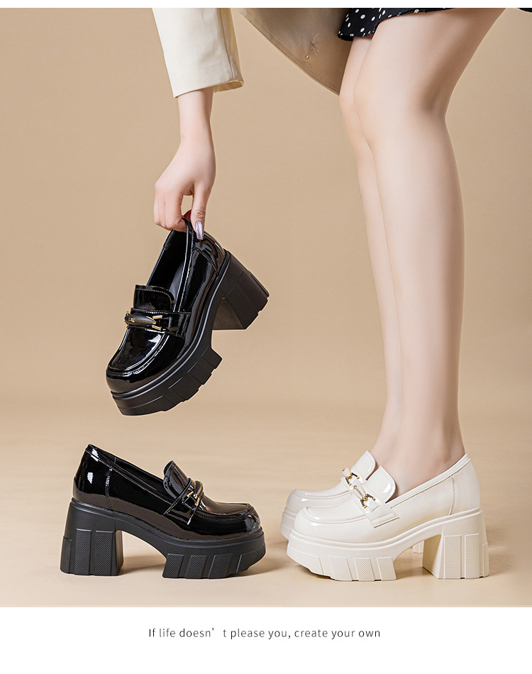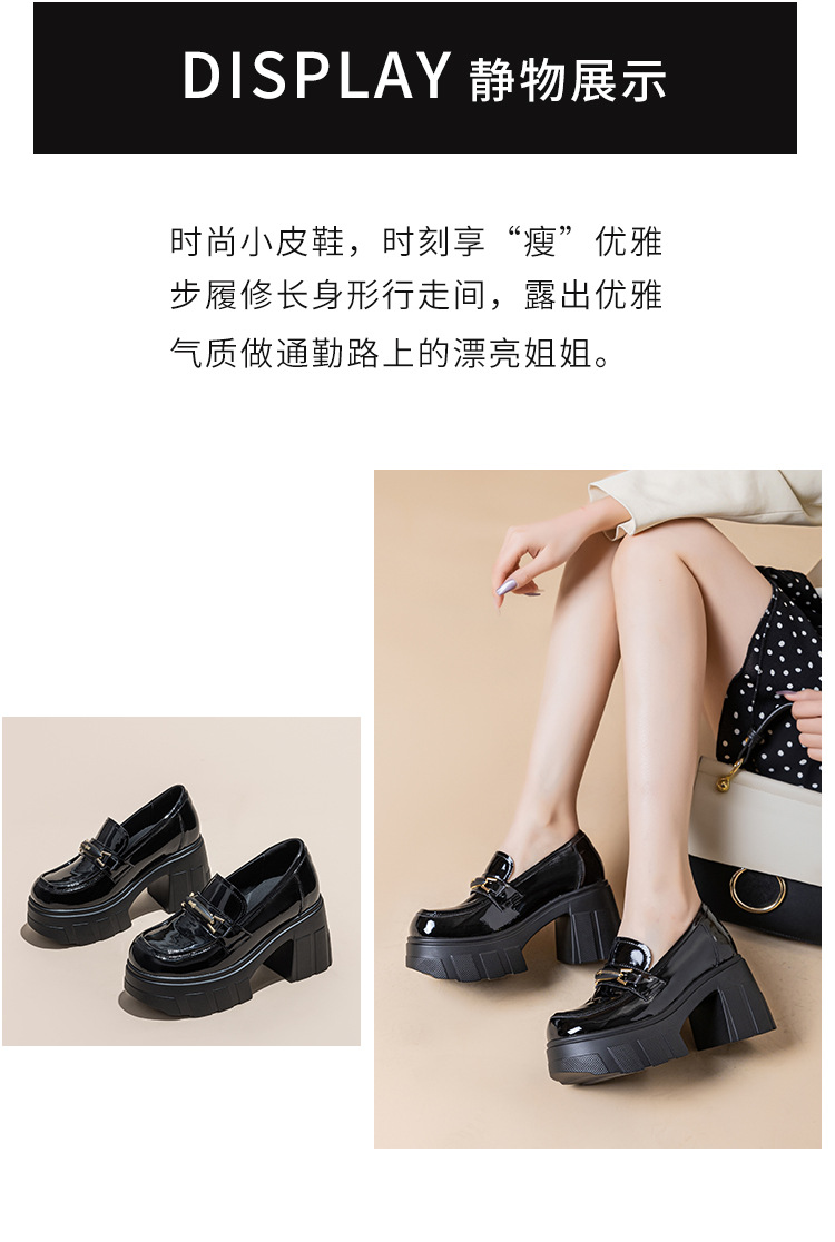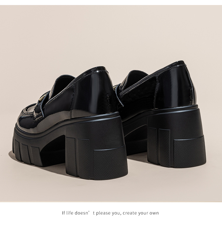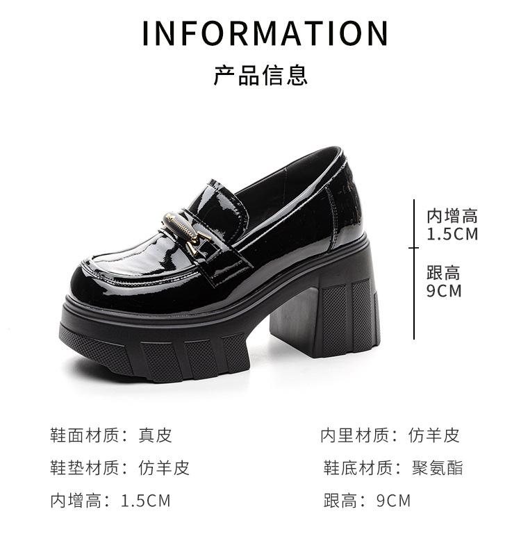 Lefu 신발 여성의 2025 새로운 싱글 신발 두꺼운 단독 플랫폼 통근 작은 가죽 신발 작은 내부 높이 여성 신발 10cm스토어 가기