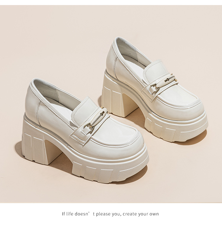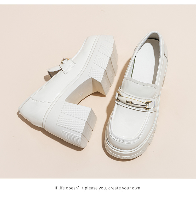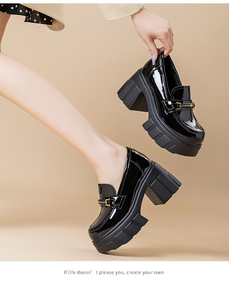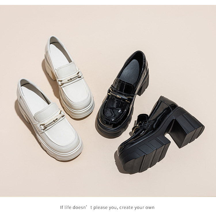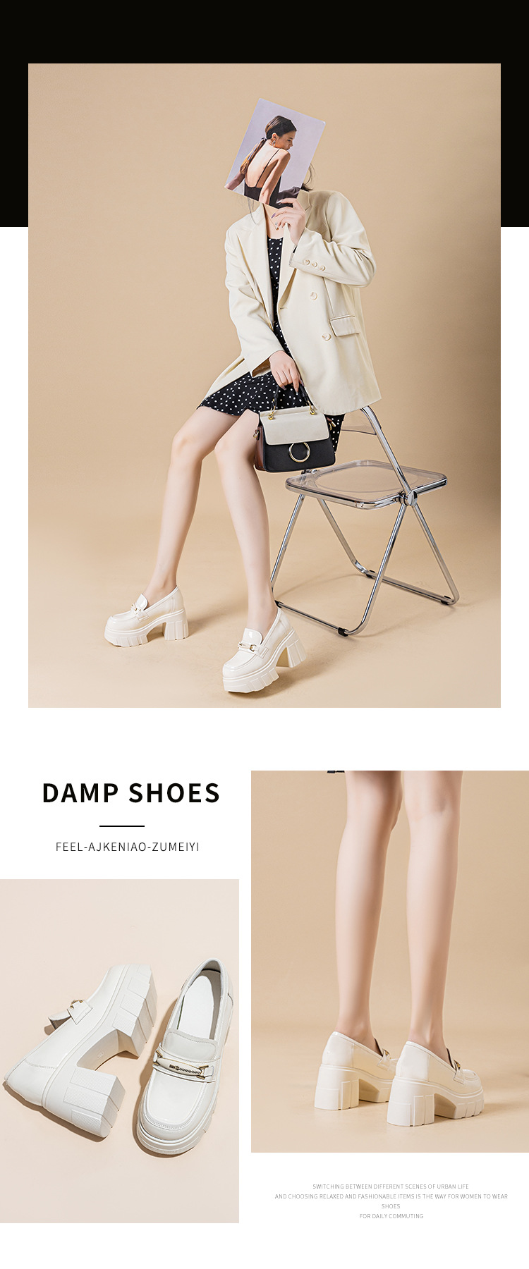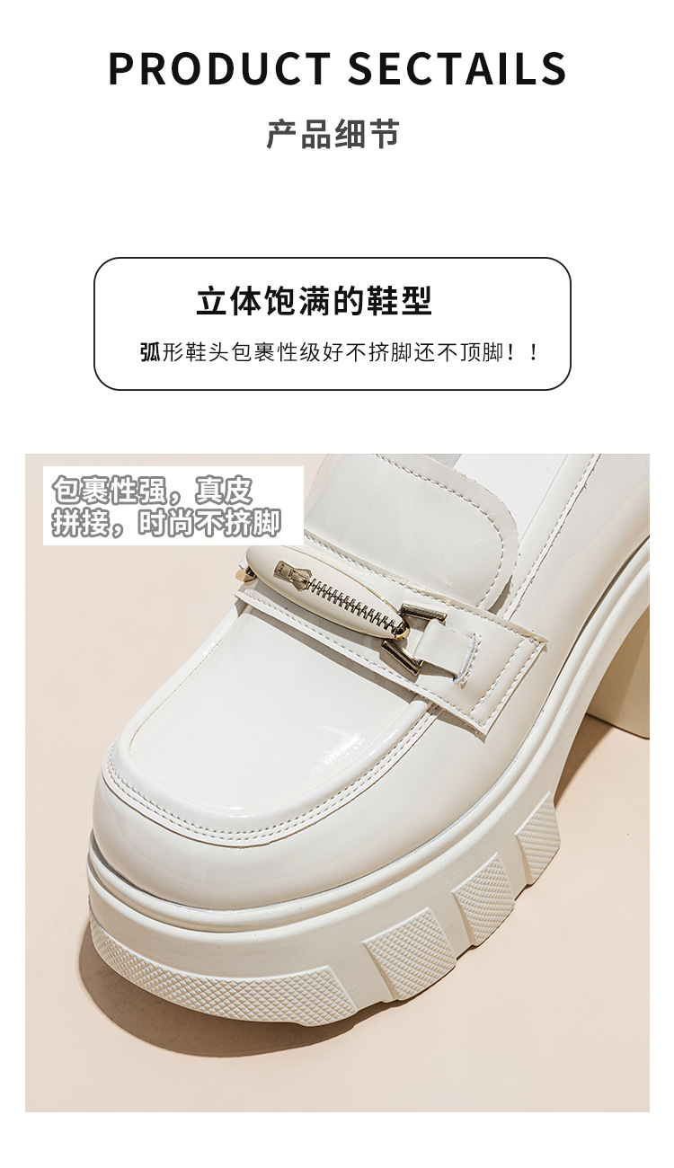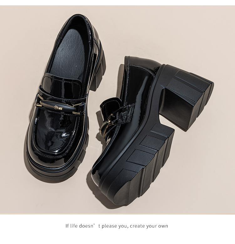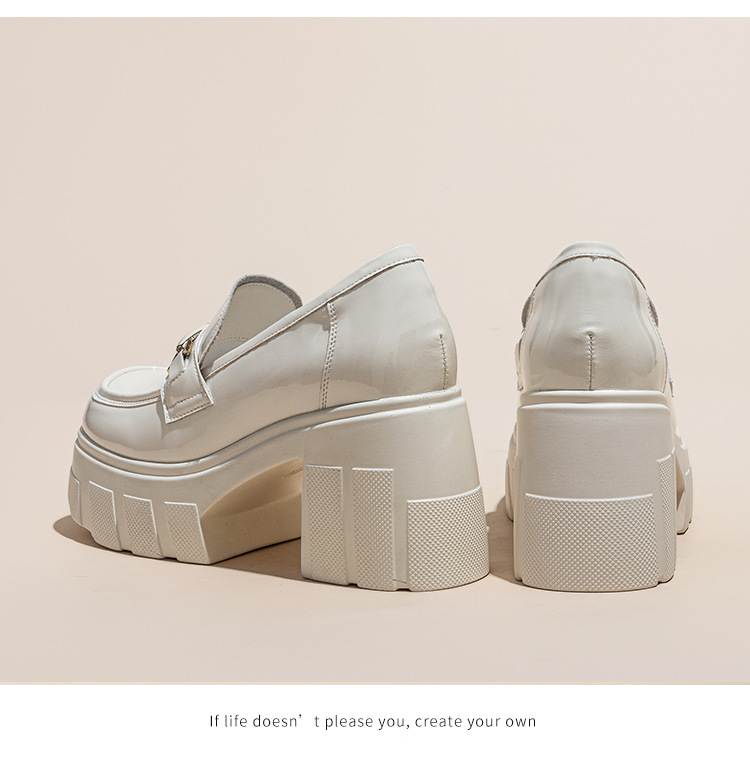 Lefu 신발 여성의 2025 새로운 싱글 신발 두꺼운 단독 플랫폼 통근 작은 가죽 신발 작은 내부 높이 여성 신발 10cm스토어 가기
