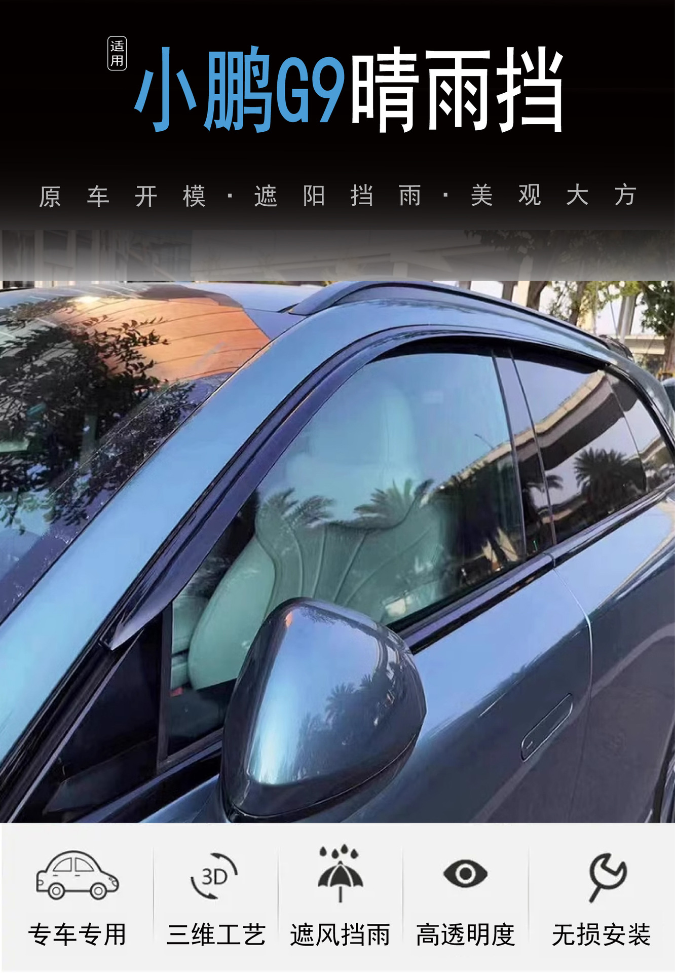 Xiaopeng G9 자동차 창 수정 외부 비 방지 아크릴 블랙 국경없는 자동차 비 방패의 국경 간 적용스토어 가기