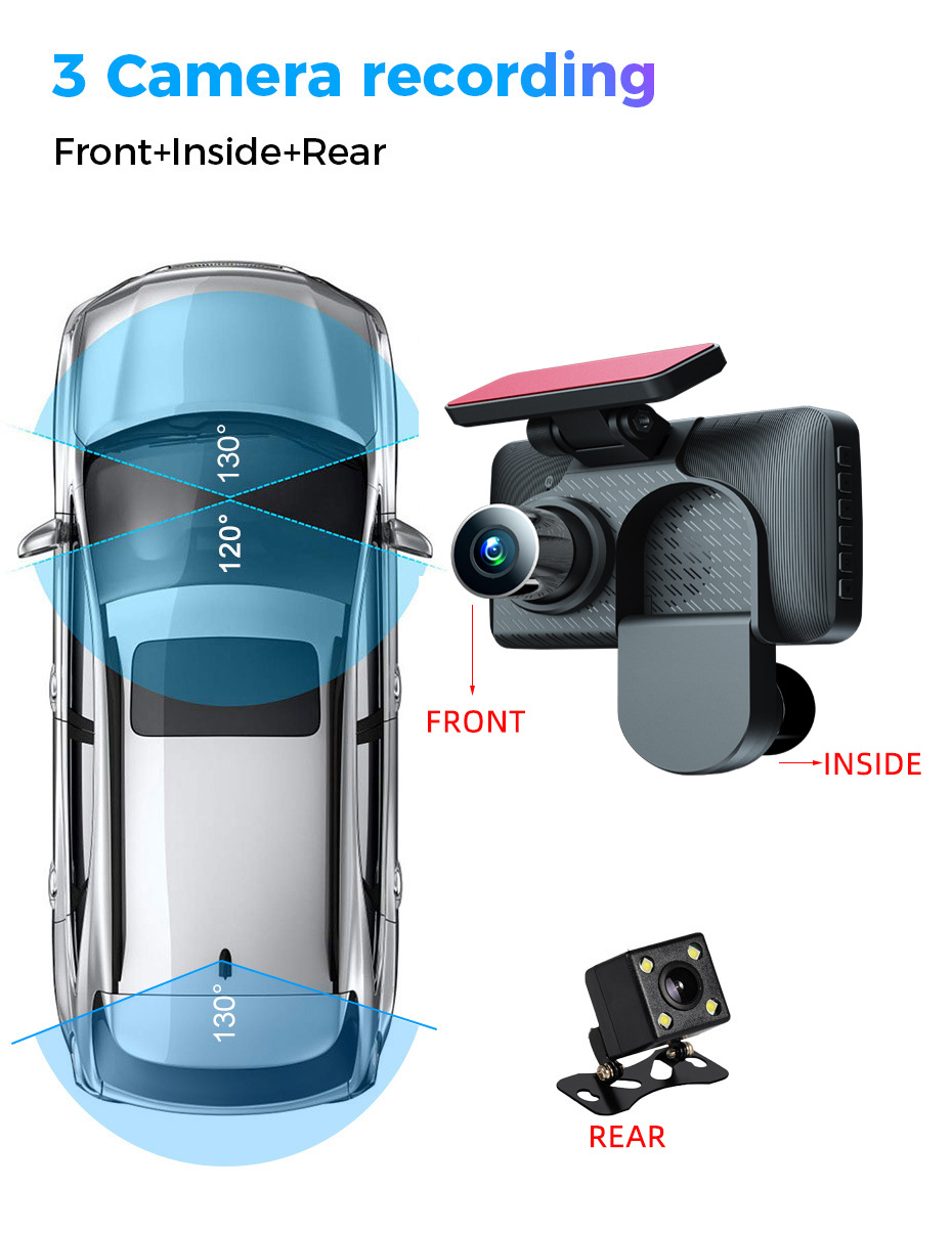 Y18 드라이브 레코더 HD 1080P 적외선 야간 비전 반전 이미지 국경 아마존 3 렌즈 4 인치스토어 가기
