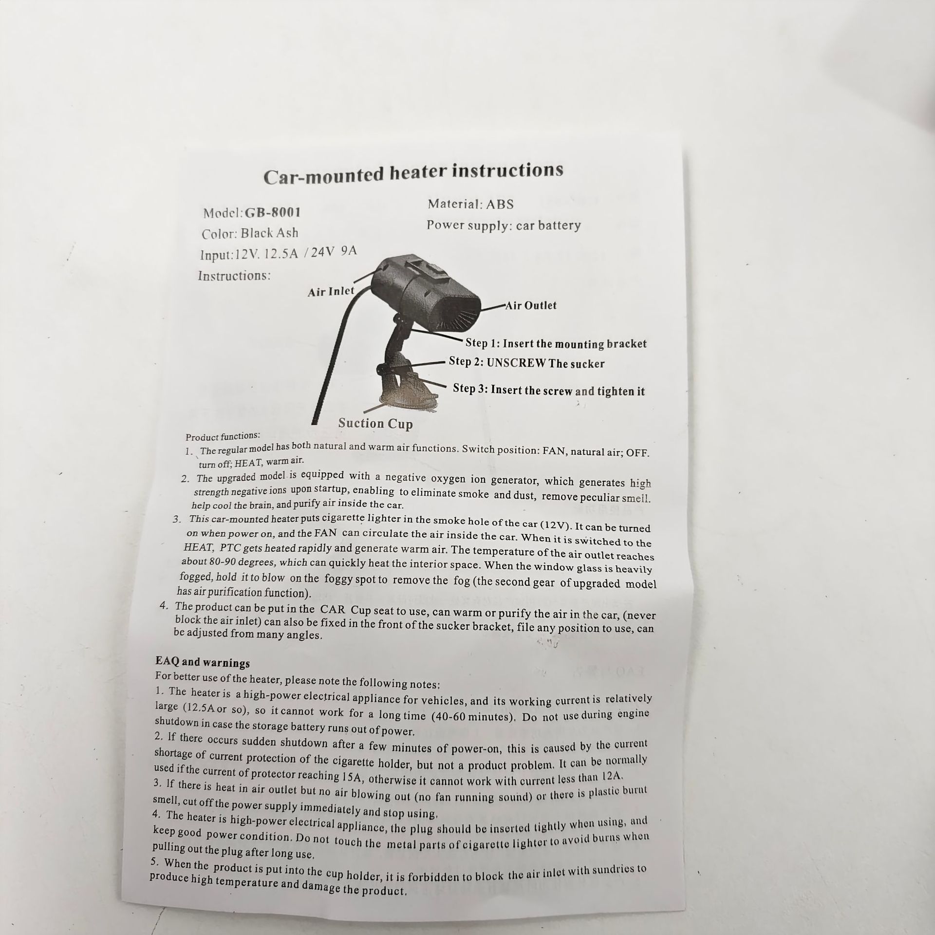 자동차 히터 12V 자동차 히터 자동차 히터 자동차 난방 팬 해동 및 해동 가스 24v 트럭 속도 난방