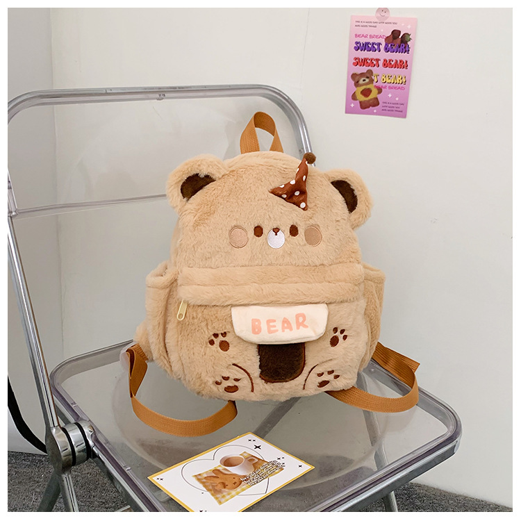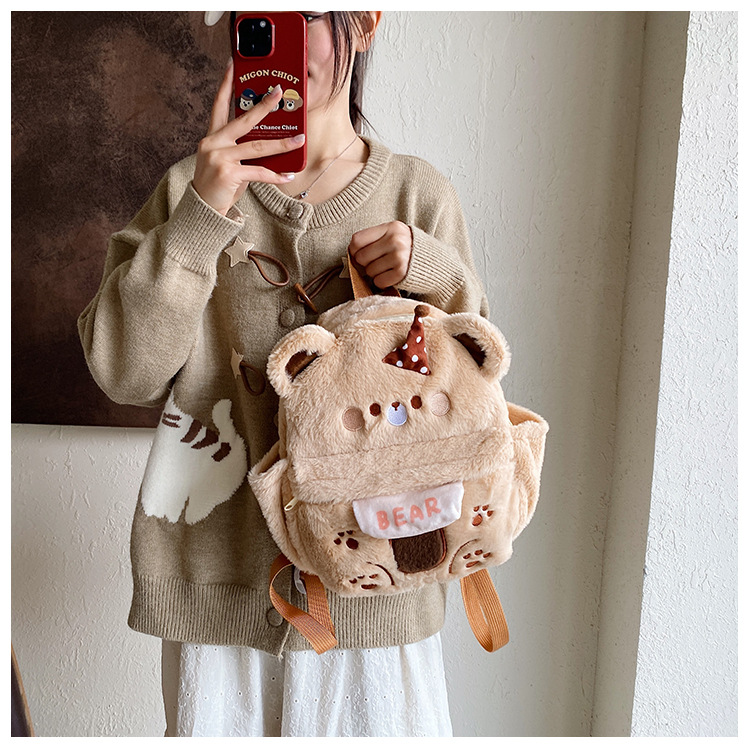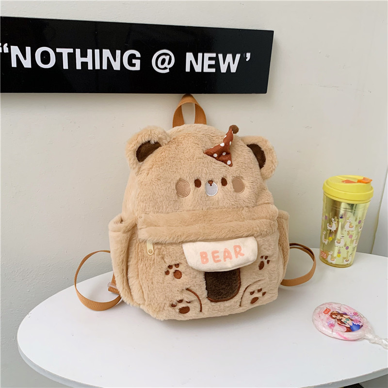 대니 베어 틈새 디자인 만화 봉제 다크 브라운 곰 귀여운 대용량 배낭 가을과 겨울 봉제 사첼