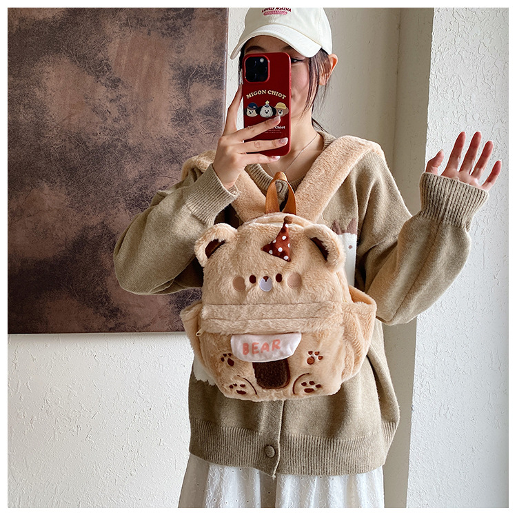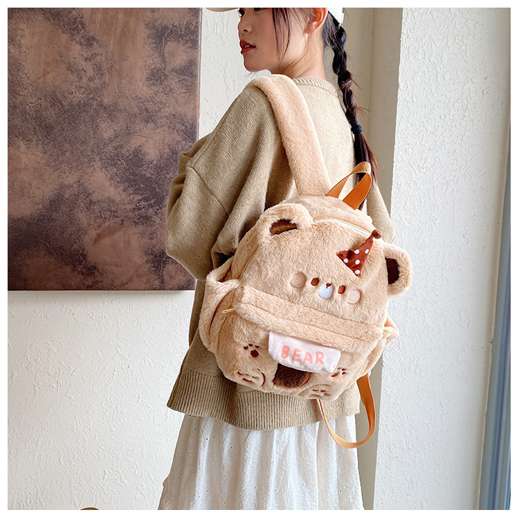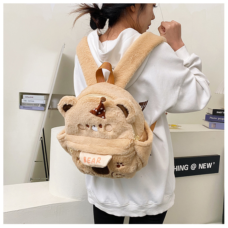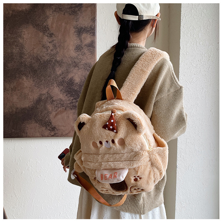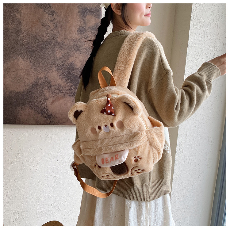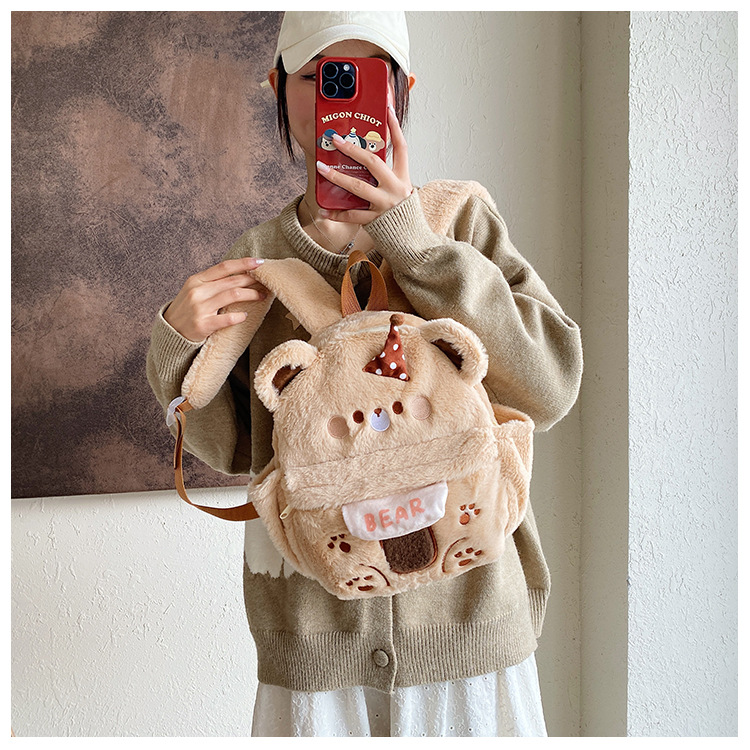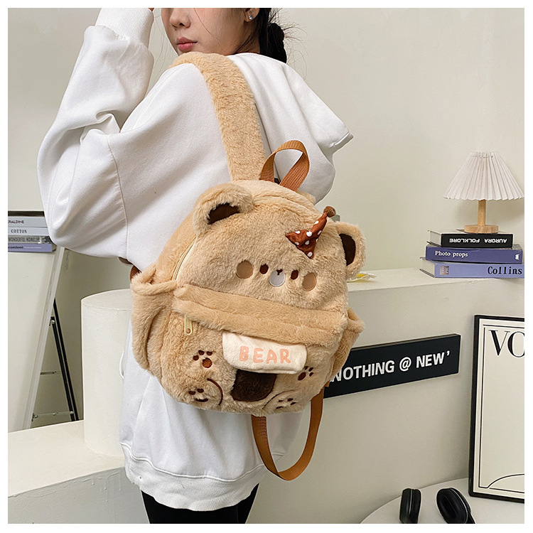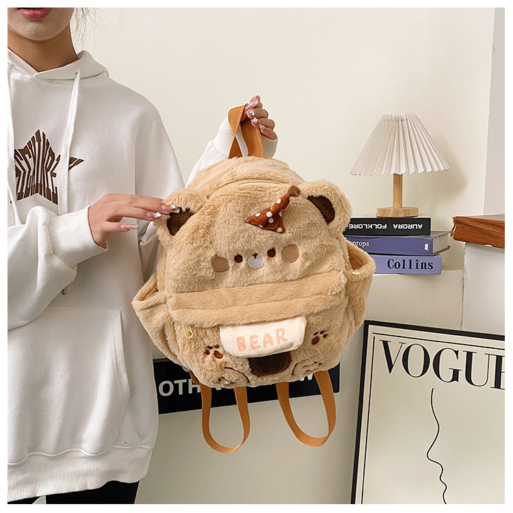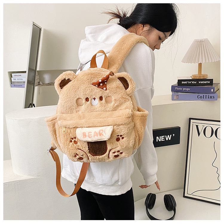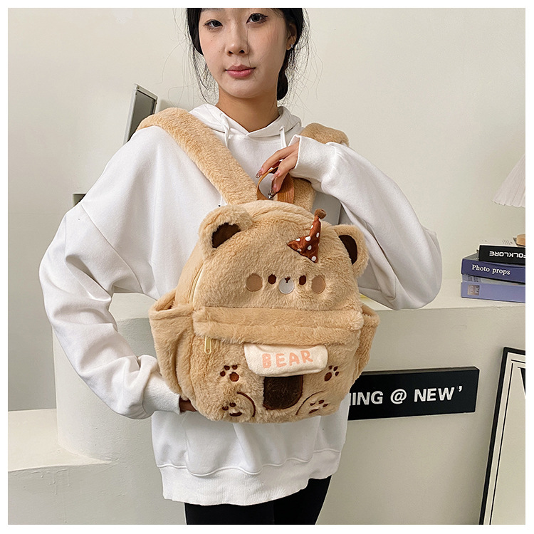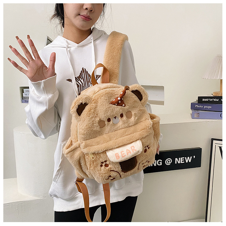 대니 베어 틈새 디자인 만화 봉제 다크 브라운 곰 귀여운 대용량 배낭 가을과 겨울 봉제 사첼스토어 가기