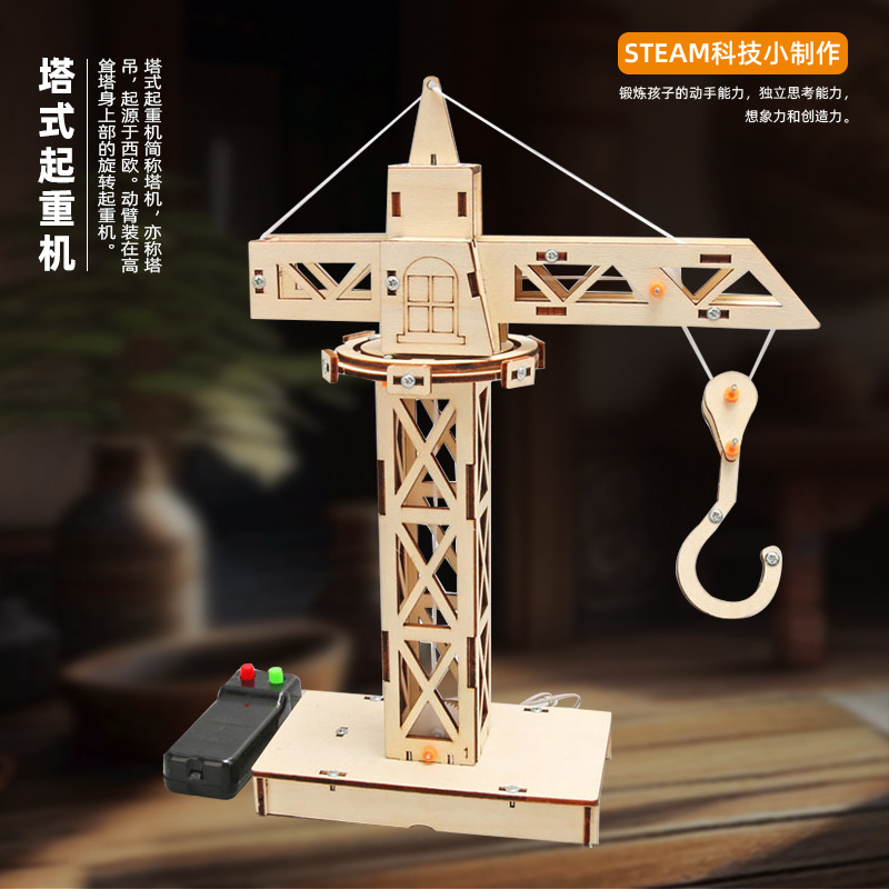 과학 기술 작은 생산 타워 크레인 원격 제어 리프팅 DIY 수동 줄기 교육 과학 실험 재료스토어 가기