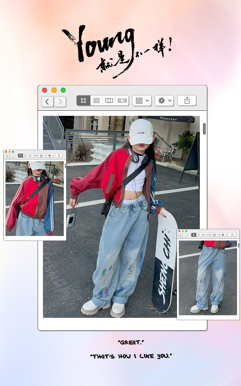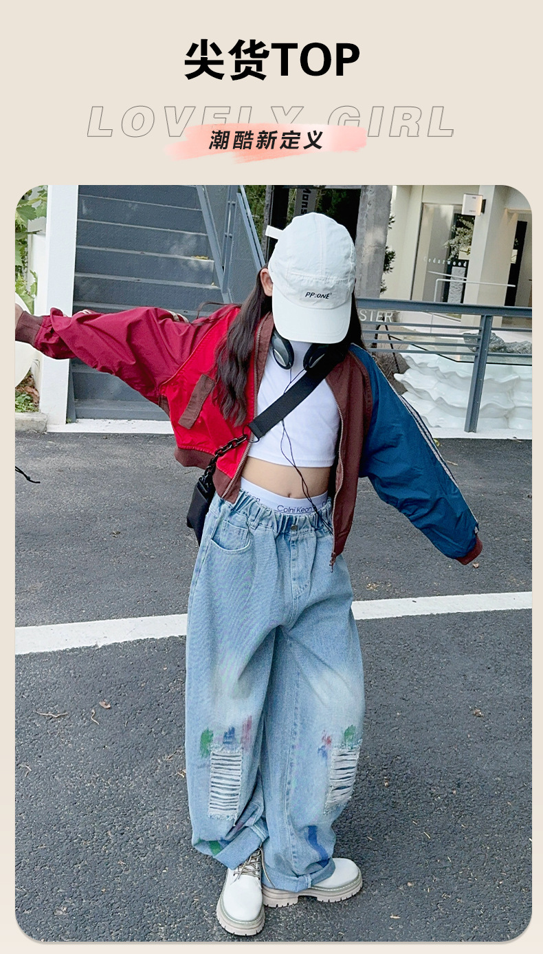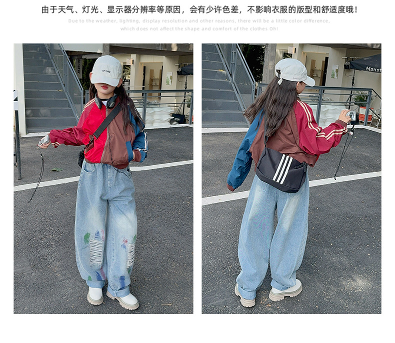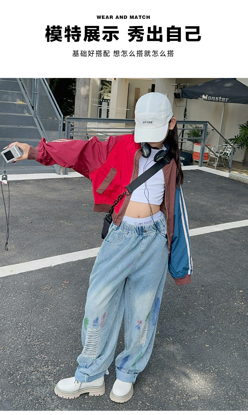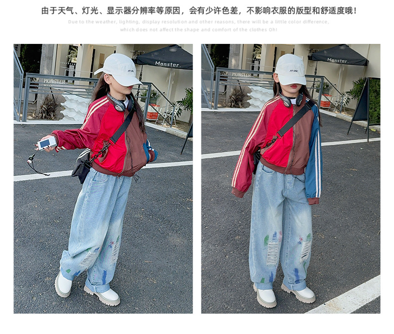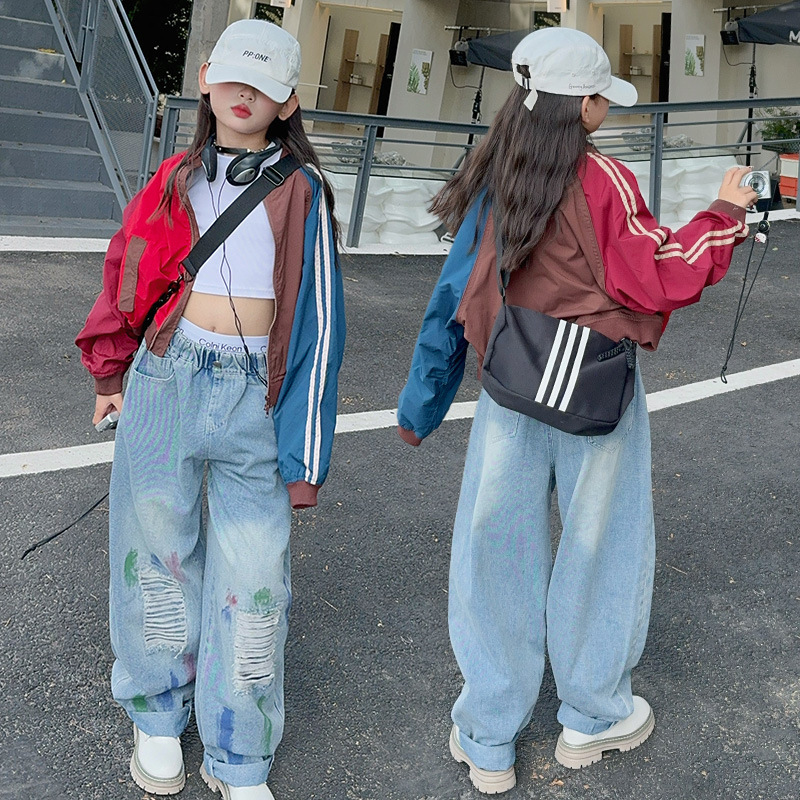 소녀의 봄 옷 큰 어린이 컬러 블록 야구 세트 재킷 유행 어린이 낙서 한 팬 차오 쿨 아동복 서양식스토어 가기