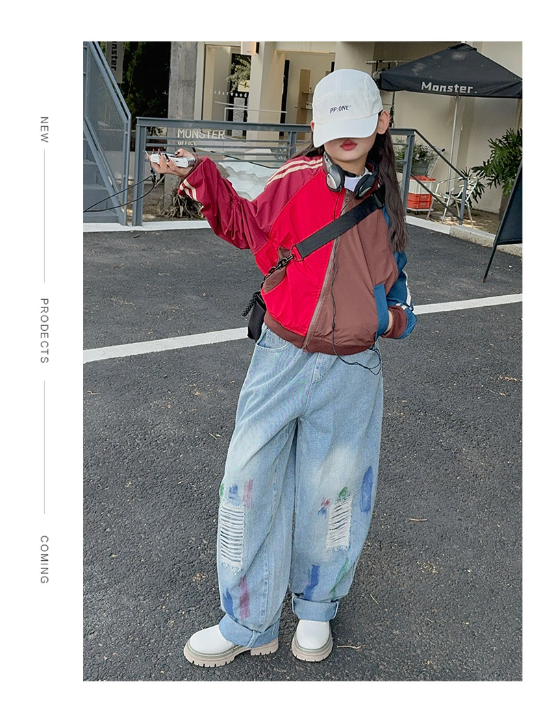 소녀의 봄 옷 큰 어린이 컬러 블록 야구 세트 재킷 유행 어린이 낙서 한 팬 차오 쿨 아동복 서양식