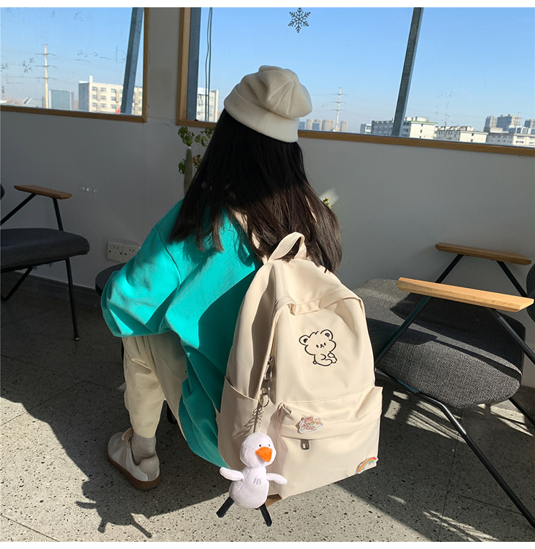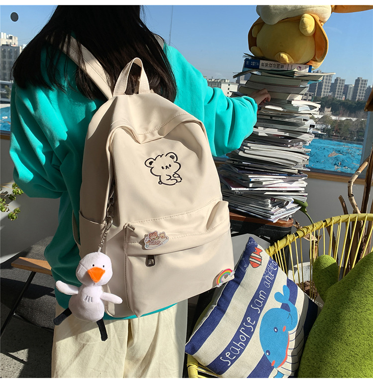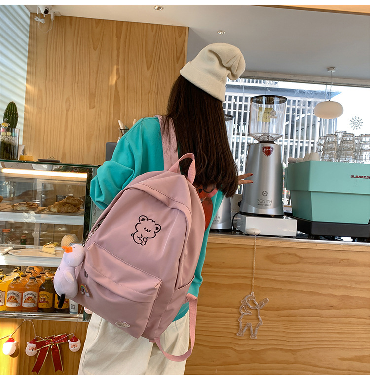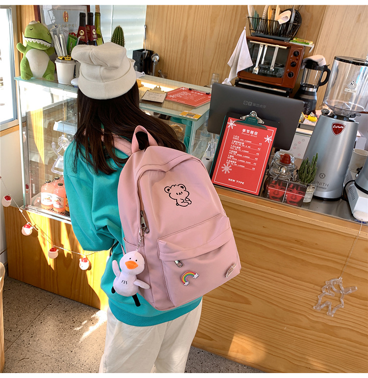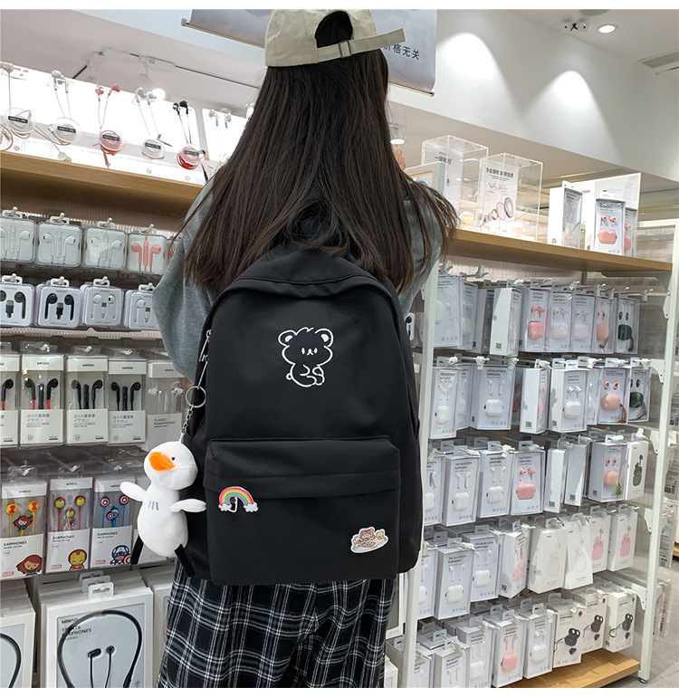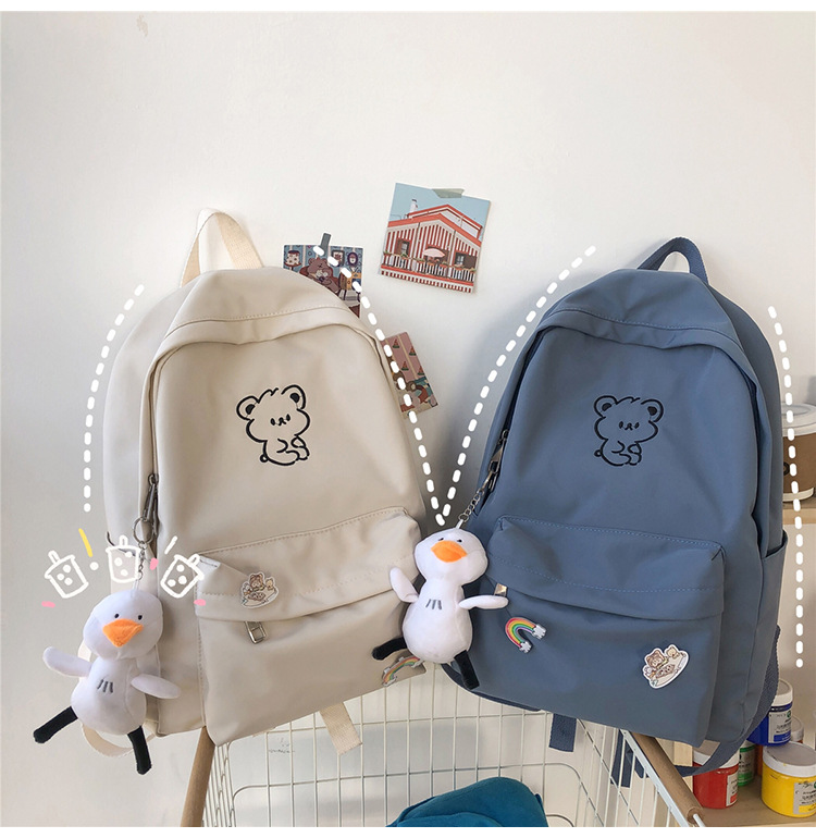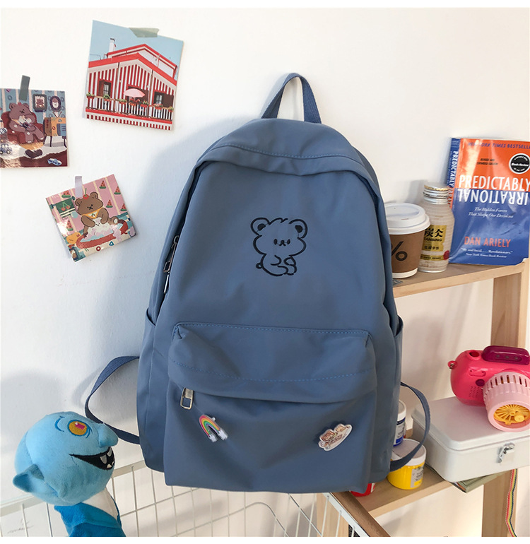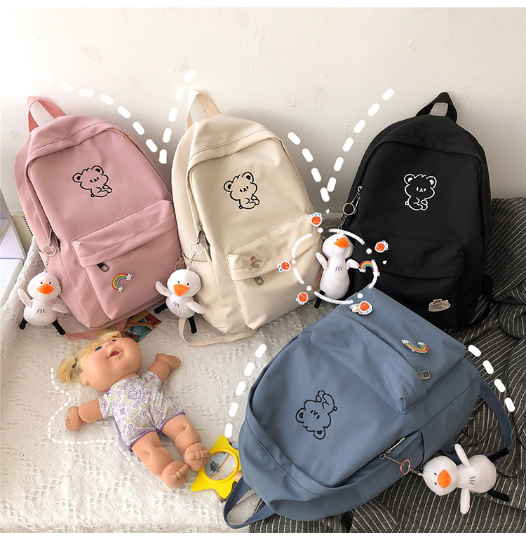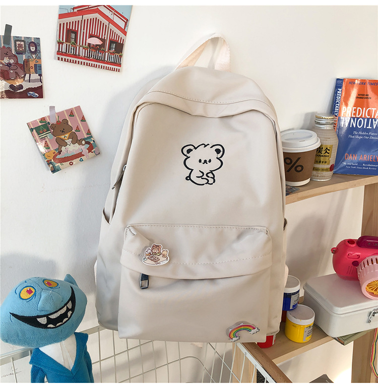 일본 스타일 ulzzang 대학 스타일 귀여운 만화 자수 곰 부드러운 소녀 Schoolbag 한국 스타일 Ins 소녀 배낭스토어 가기