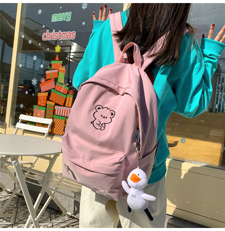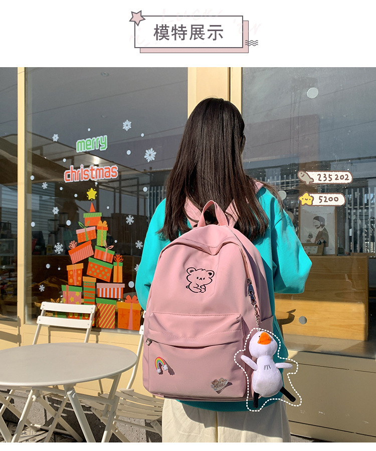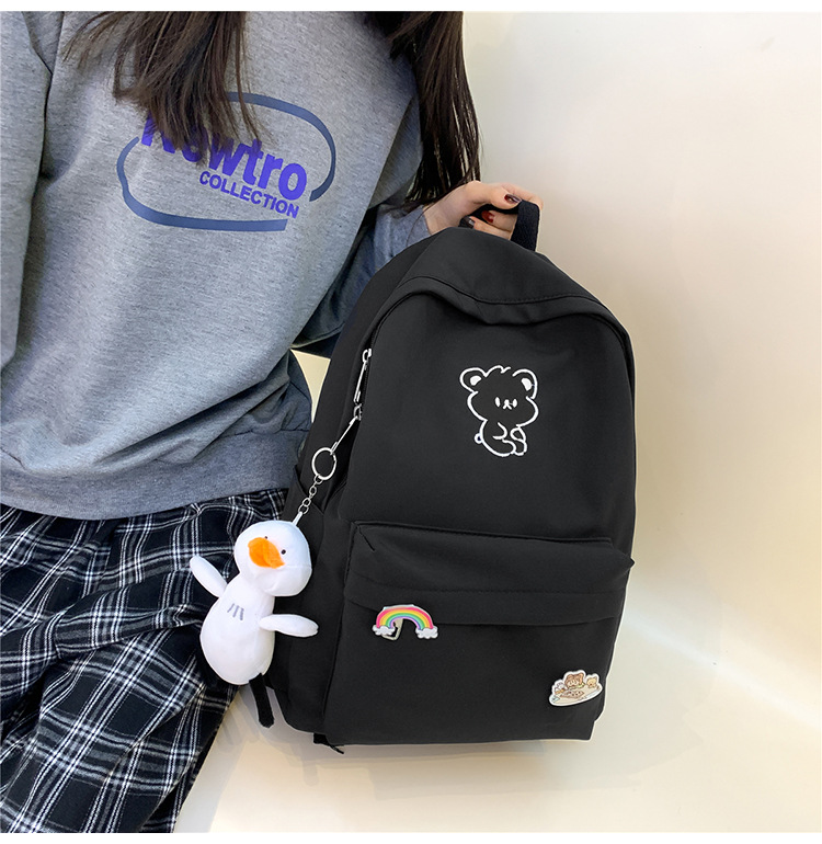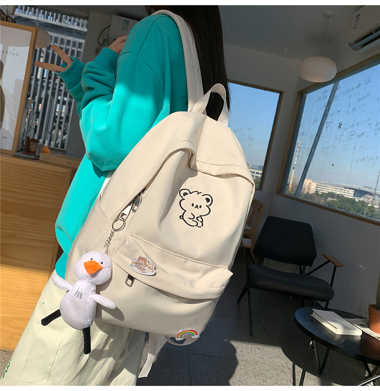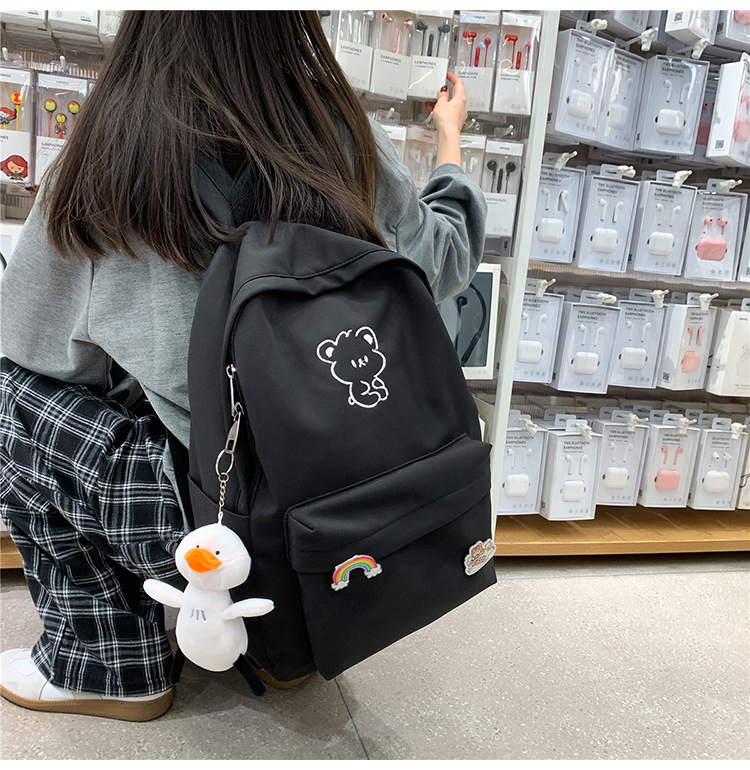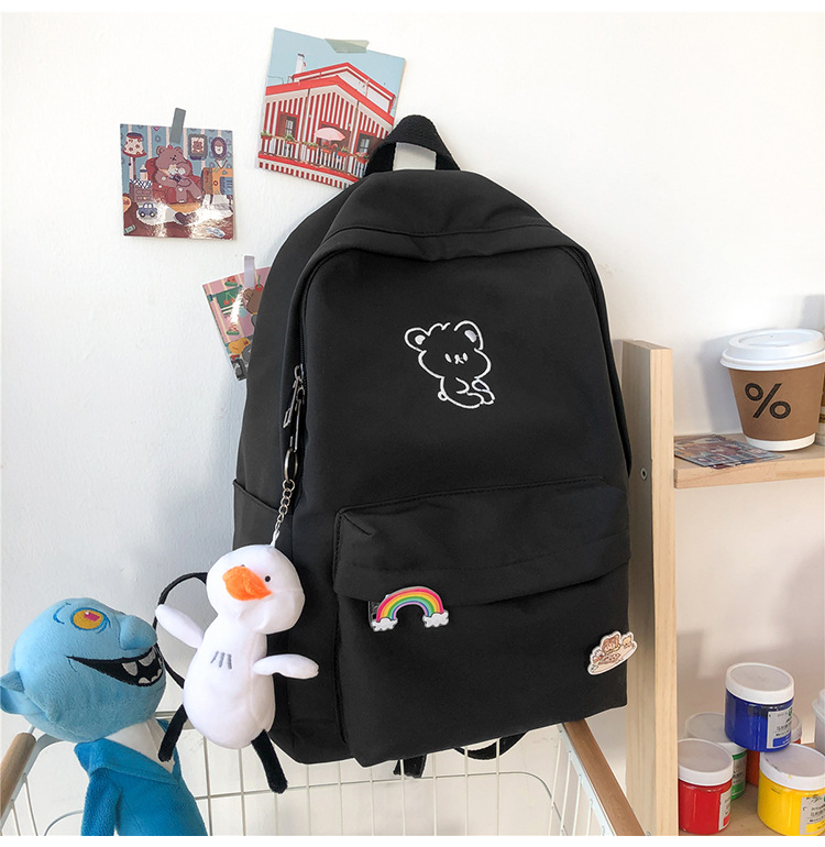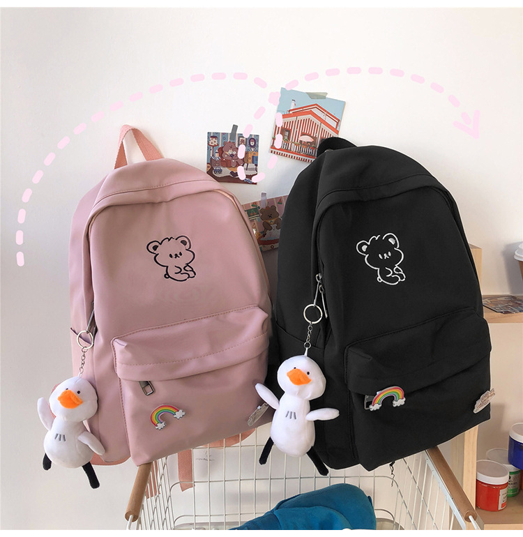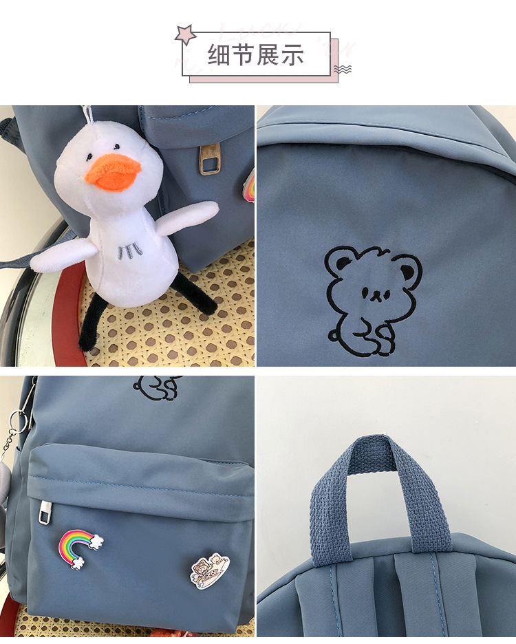 일본 스타일 ulzzang 대학 스타일 귀여운 만화 자수 곰 부드러운 소녀 Schoolbag 한국 스타일 Ins 소녀 배낭스토어 가기