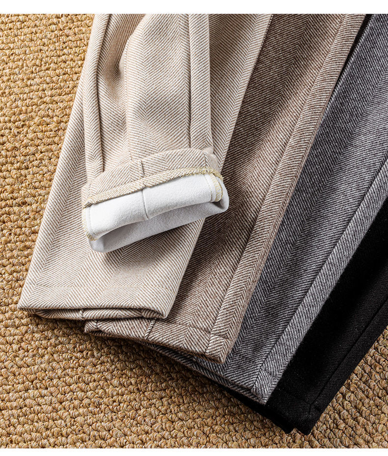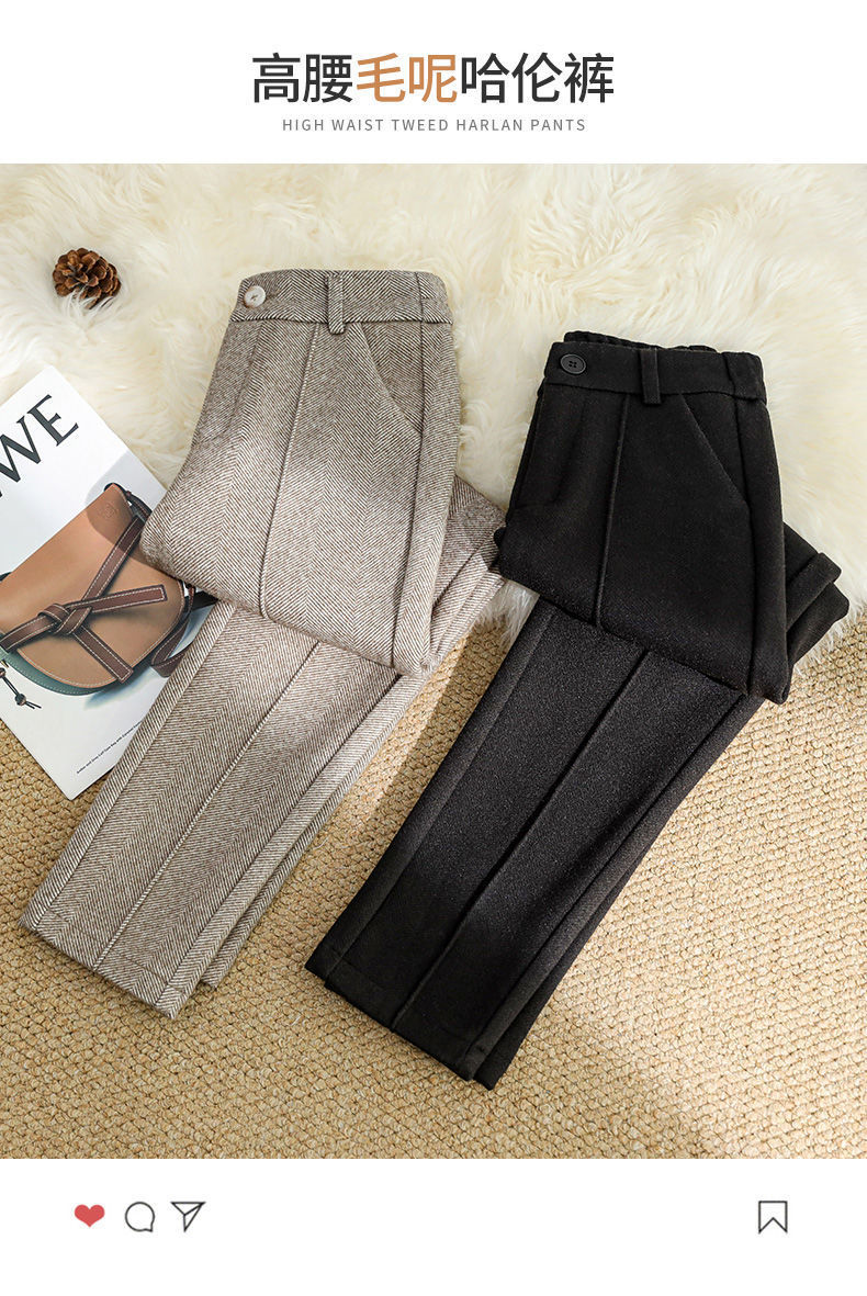 여자 헤링본 모직 바지 겨울 2023 새로운 가을과 겨울 외부 높은 허리 슬리밍 따뜻한 캐주얼 나인 벨벳스토어 가기