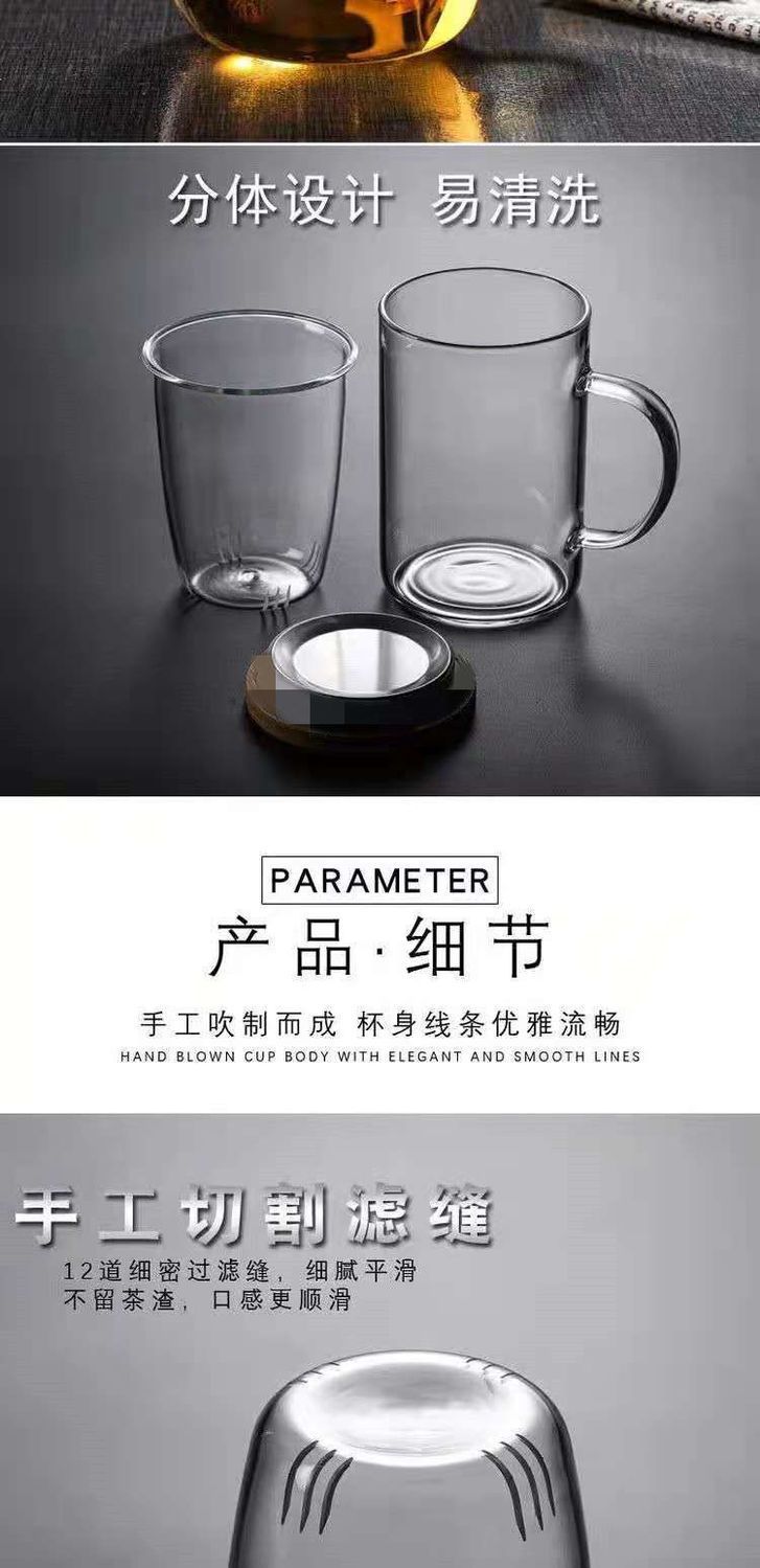 높은 붕규산 내열 유리 컵 티컵 다도 컵 티 컵 차 분리 필터 컵 사무실 컵 음료 9 벨벳