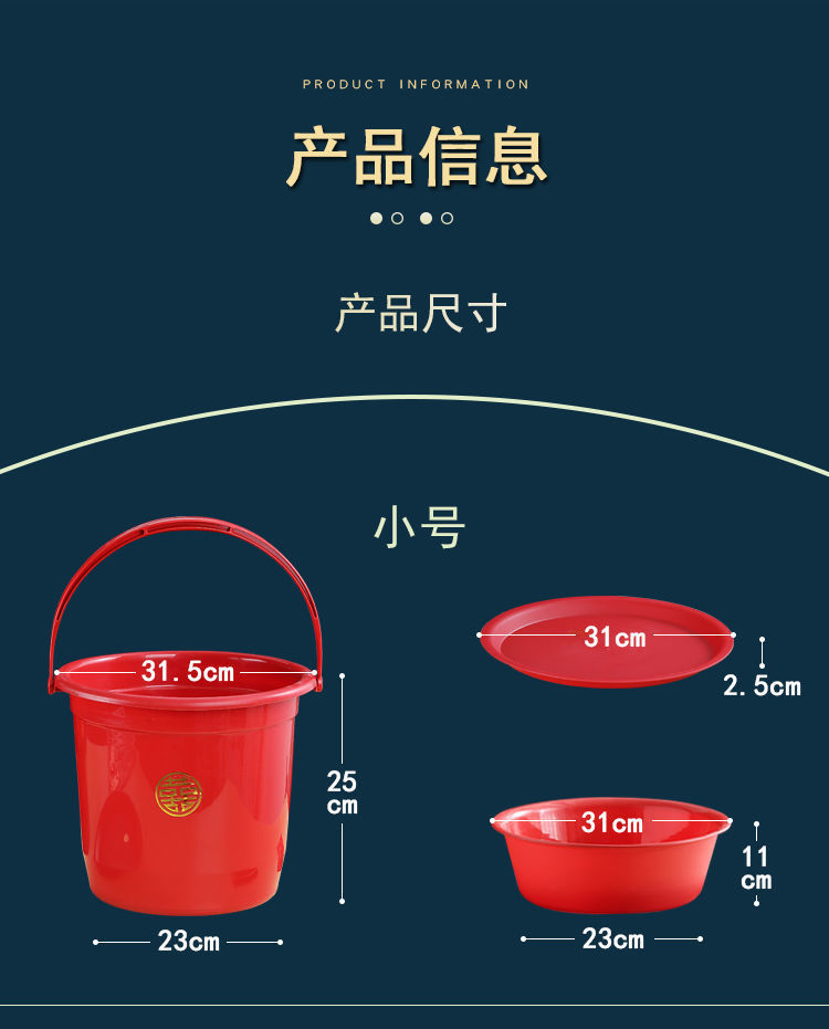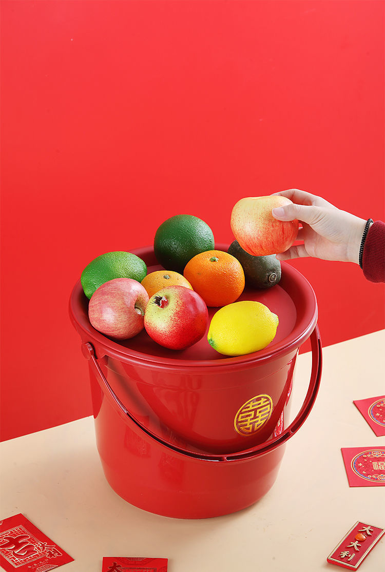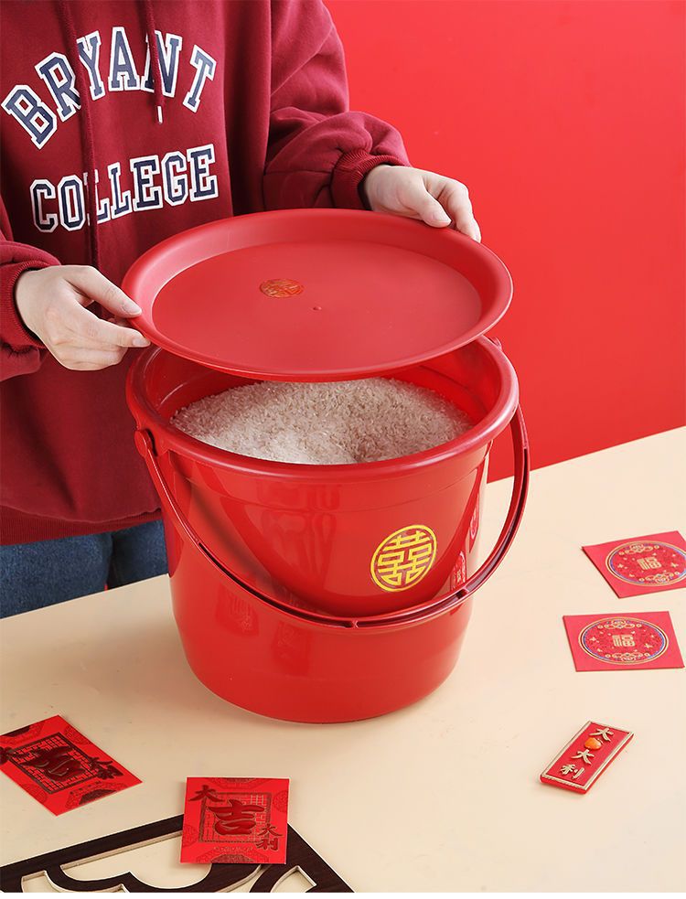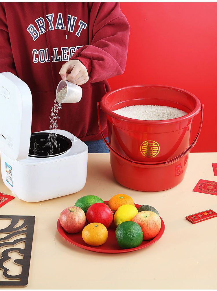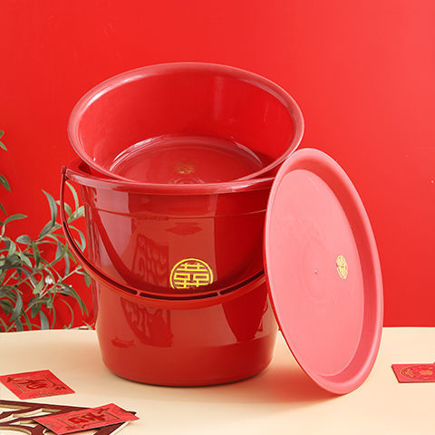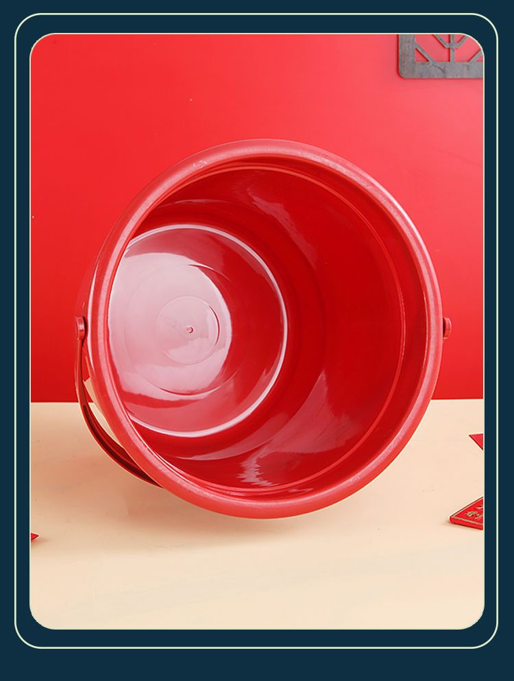 웨딩 해피 버킷 레드 두꺼운 플라스틱 버킷 아기 양동이 가정 세탁 목욕 버킷 동반 웨딩 핸드 헬드 나인 벨벳