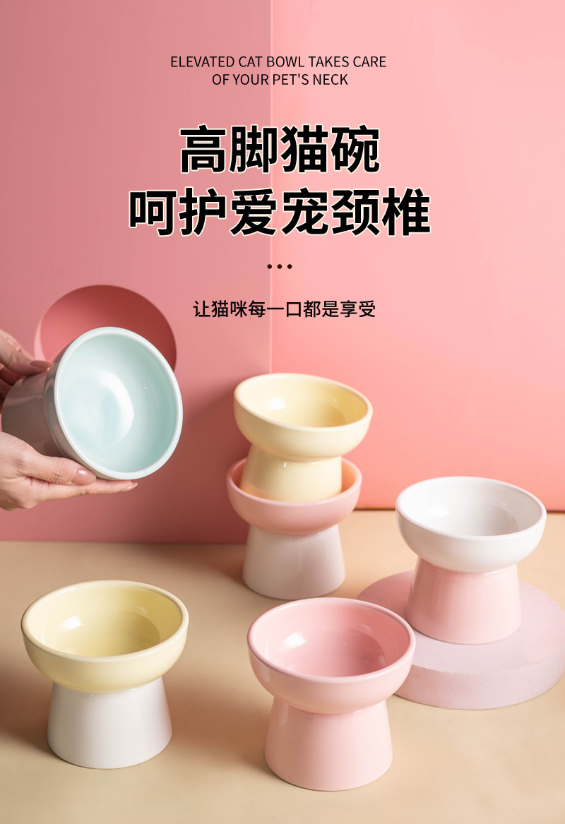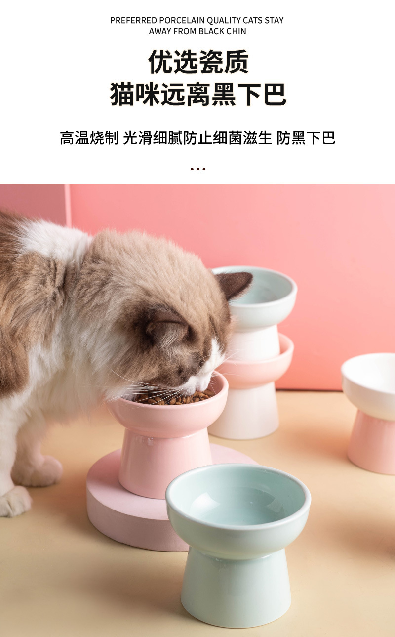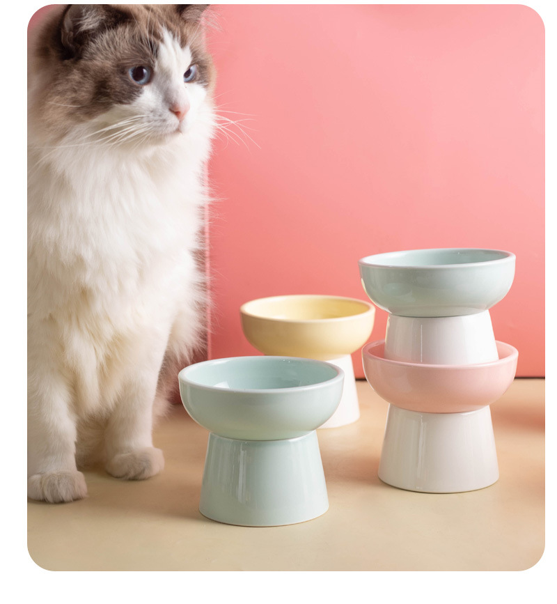 우유 후킹 고양이 그릇 고양이 먹이 분지 세라믹 높은 발 보호 자궁 경부 척추 반대로 뒤집는 개 그릇 애완 동물 마시는 음식 고양이 그릇 국경스토어 가기