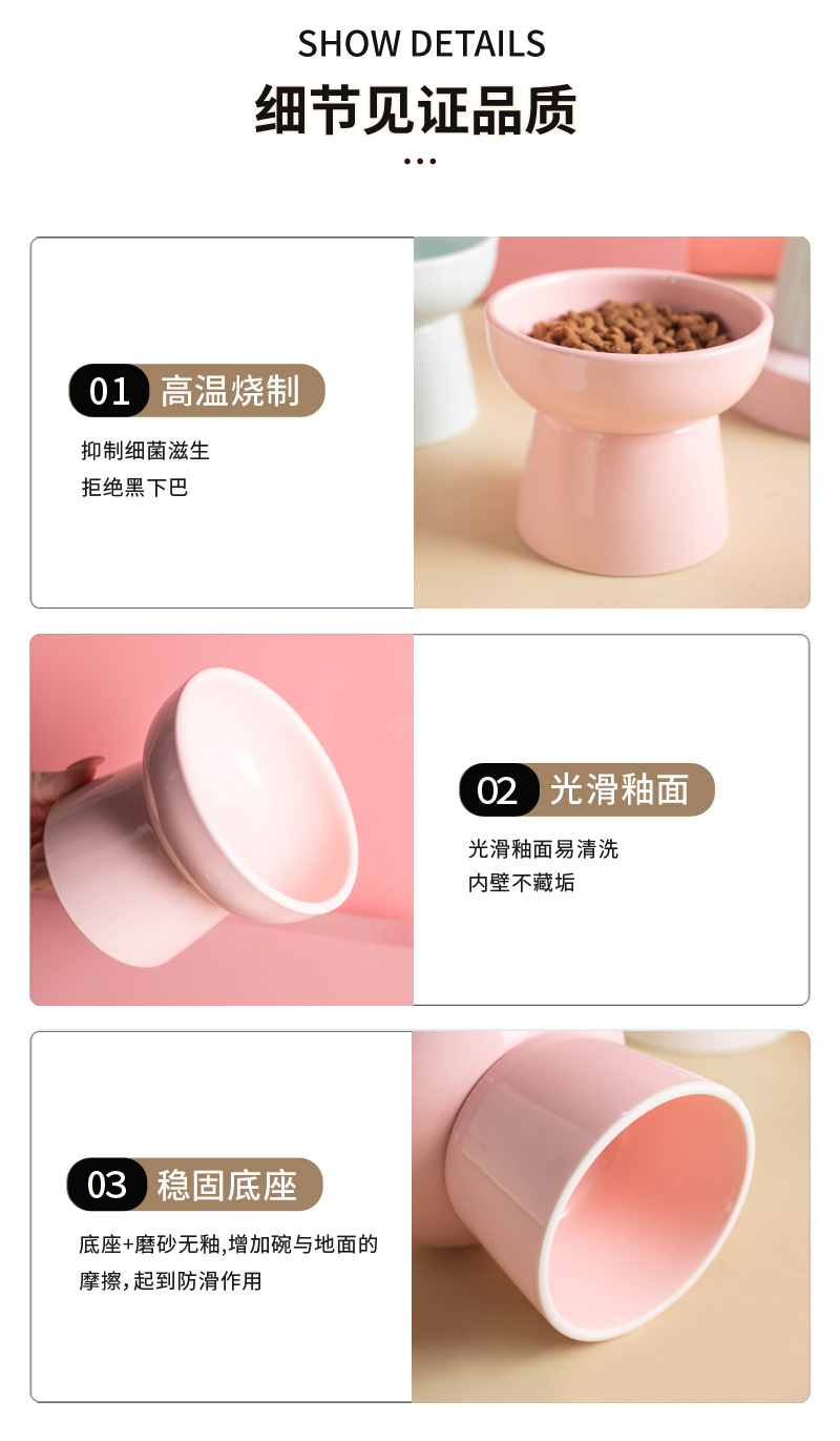 우유 후킹 고양이 그릇 고양이 먹이 분지 세라믹 높은 발 보호 자궁 경부 척추 반대로 뒤집는 개 그릇 애완 동물 마시는 음식 고양이 그릇 국경