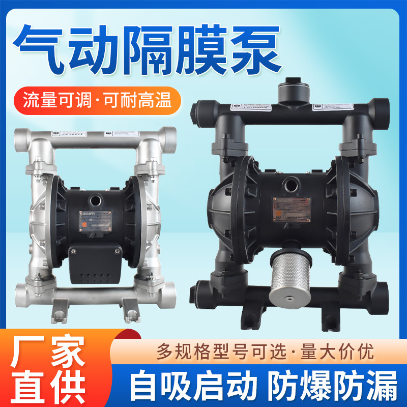 Gude 브랜드 공압 다이어프램 펌프 QBY3 스테인레스 스틸 부식 방지 알루미늄 합금 대형 흐름 폭발 방지 PP 플라스틱 화학 펌프