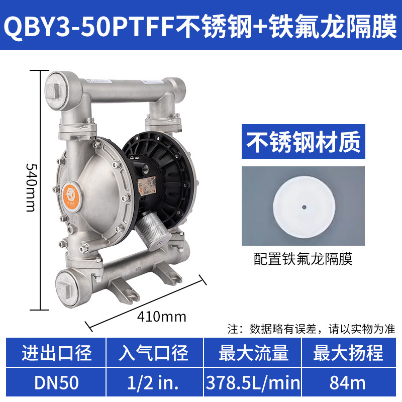 • QBY3-50PTFF 스테인레스 스틸 + 테프론 다이어프램