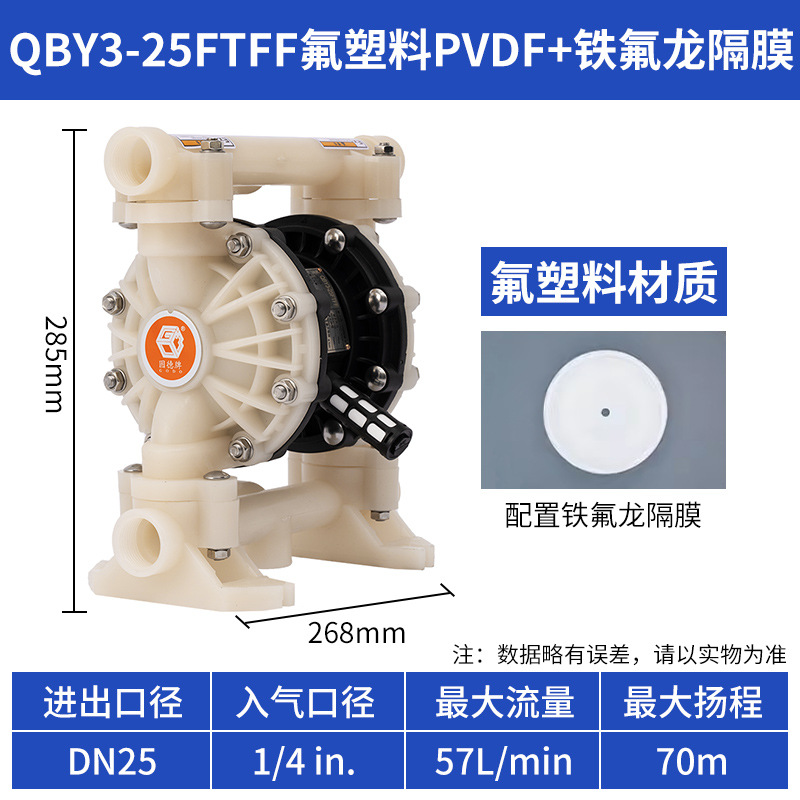 • QBY3-25FTFF 불소 플라스틱 PVDF + 테프론 다이어프램
