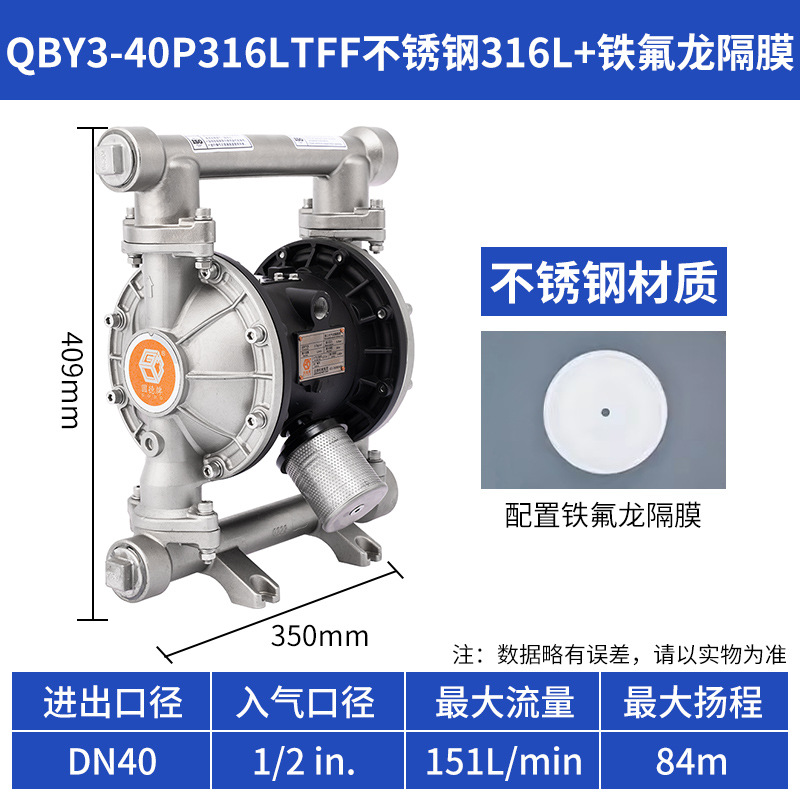 • QBY3-40PTFF 스테인레스 스틸 + 테프론 다이어프램