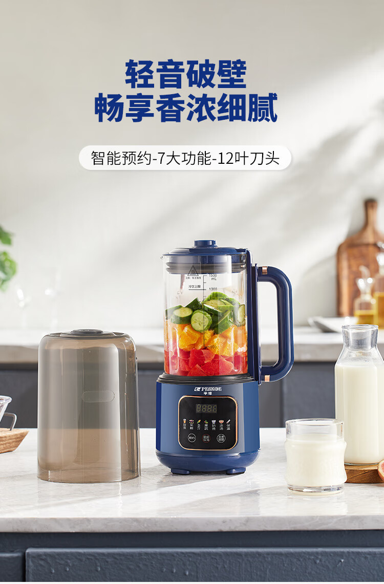 믹서기 겸용 두유 제조기 가정용 1.5L 다기능 예약 가능 저소음 필터 없는 두유 제조기 이유식 제조기 아침식사 제조기