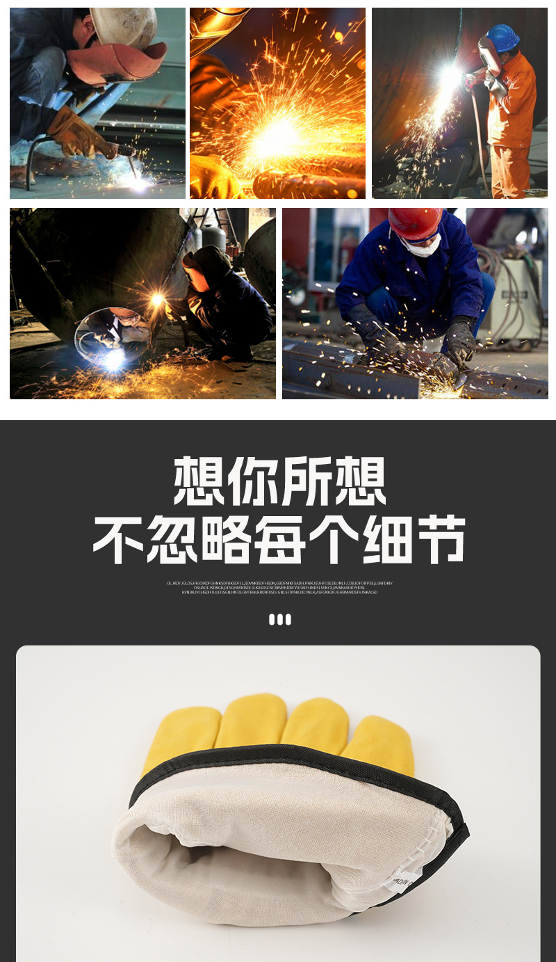 용접 장갑 두꺼운 내마모성 양가죽 용접기 보호 장갑 단색 단열 방지 아르곤 아크 용접 장갑스토어 가기
